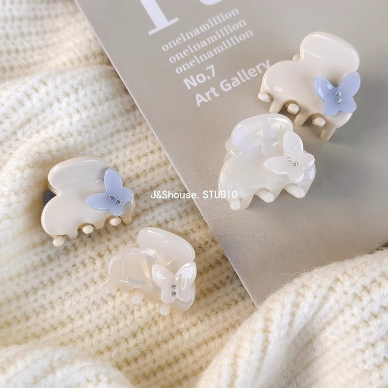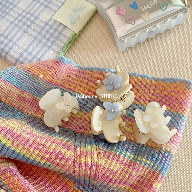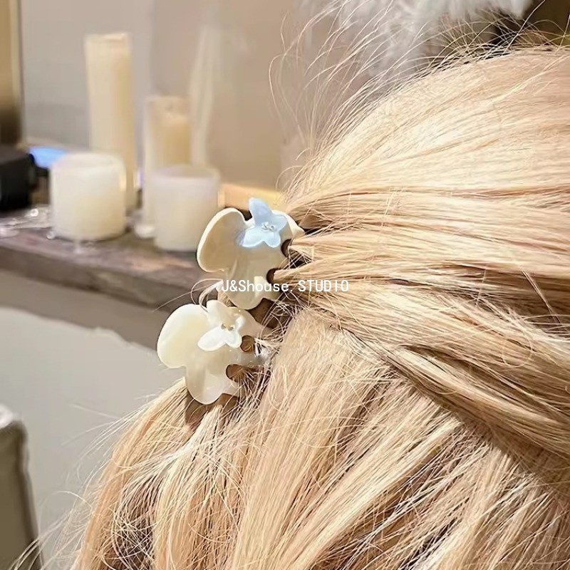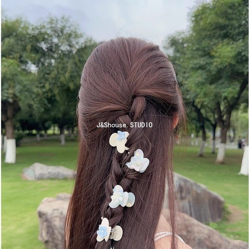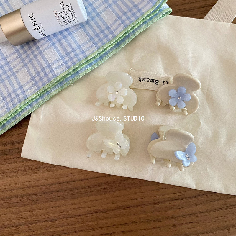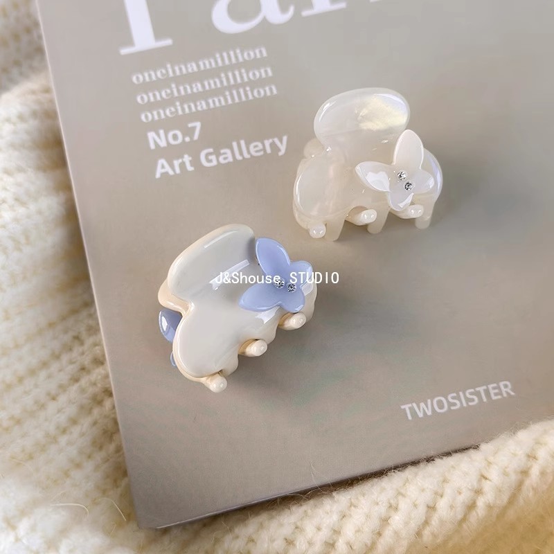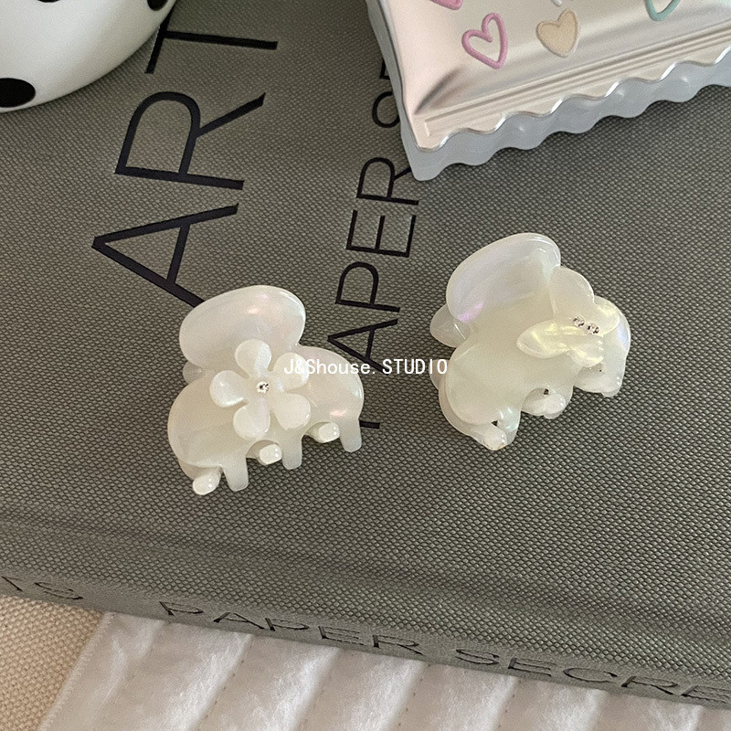 เคเอฟ751 ขนาดเล็กสไตล์เกาหลีอะซิเตทนางเงือกสีขาว พลอยเทียม ผีเสื้อดอกไม้ที่เรียบง่ายที่สวยหรูผมกรงเล็บคลิปอุปกรณ์เสริมผู้หญิง