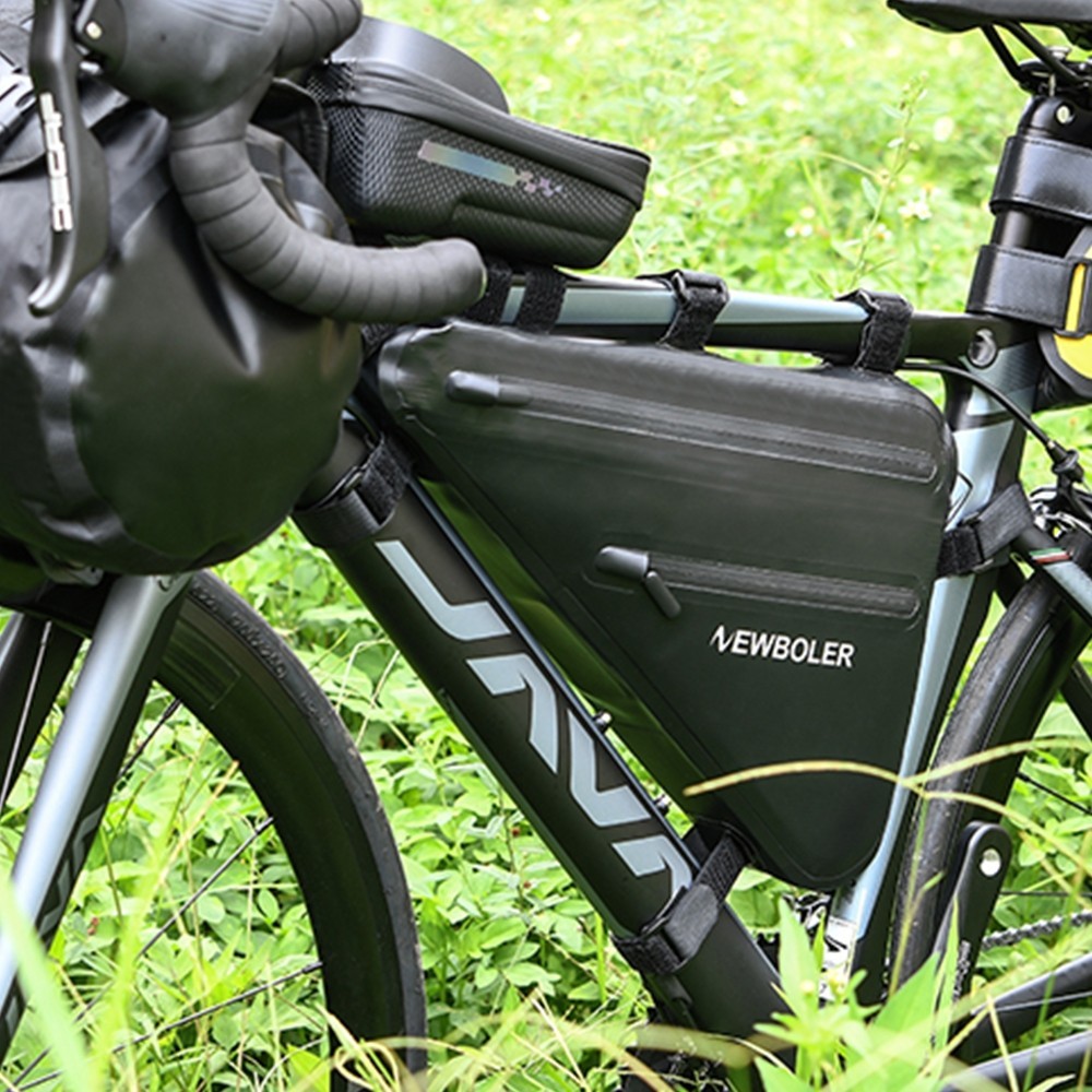 NEWBOLER กระเป๋าสามเหลี่ยมกรอบจักรยานกันน้ำ 100% กระเป๋าจักรยานท่อด้านหน้า MTB ถนนขี่จักรยานกลางแจ้ง Pannier กระเป๋าสะท้อนแสง