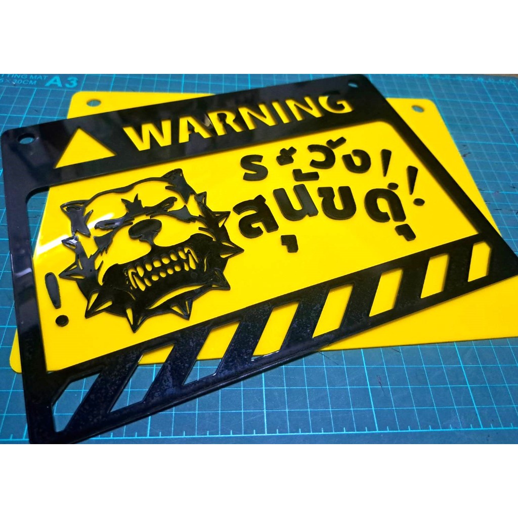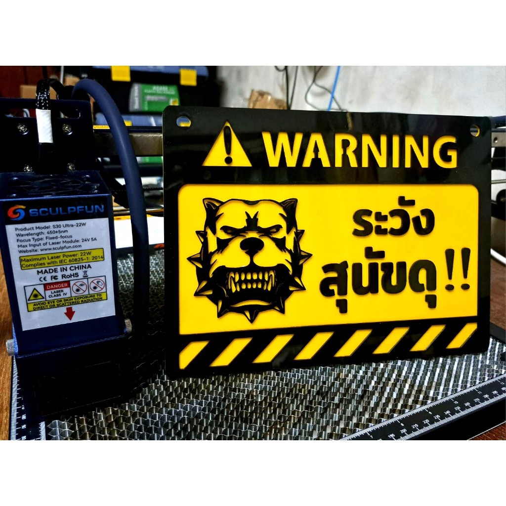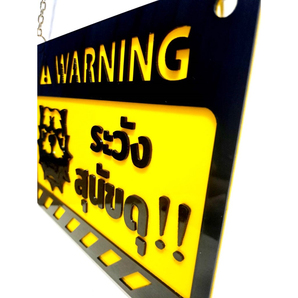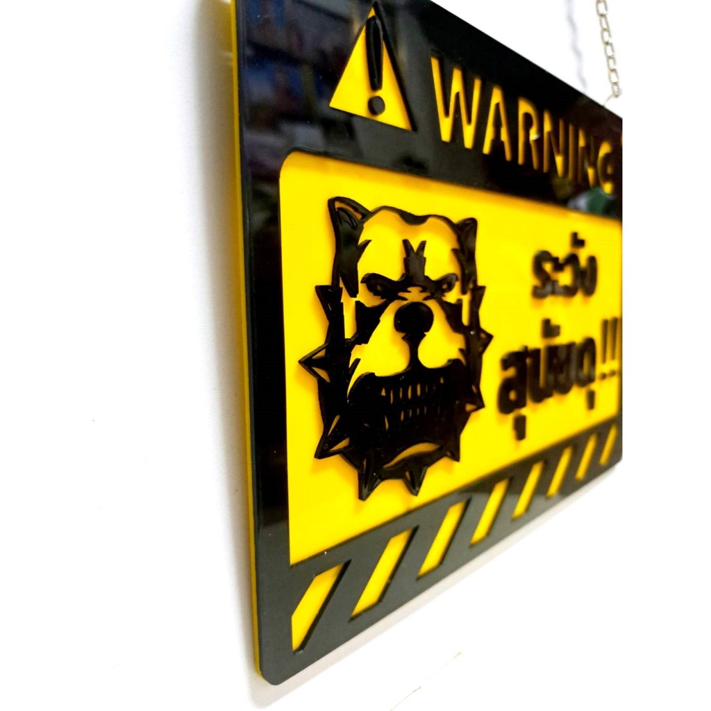 ป้ายเลเซอร์ อะคริลิค ระวังสุนัขดุ!!
