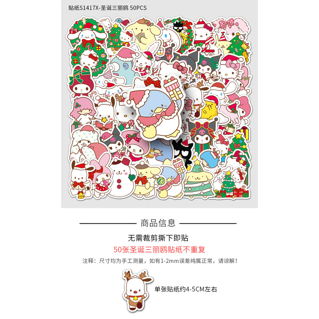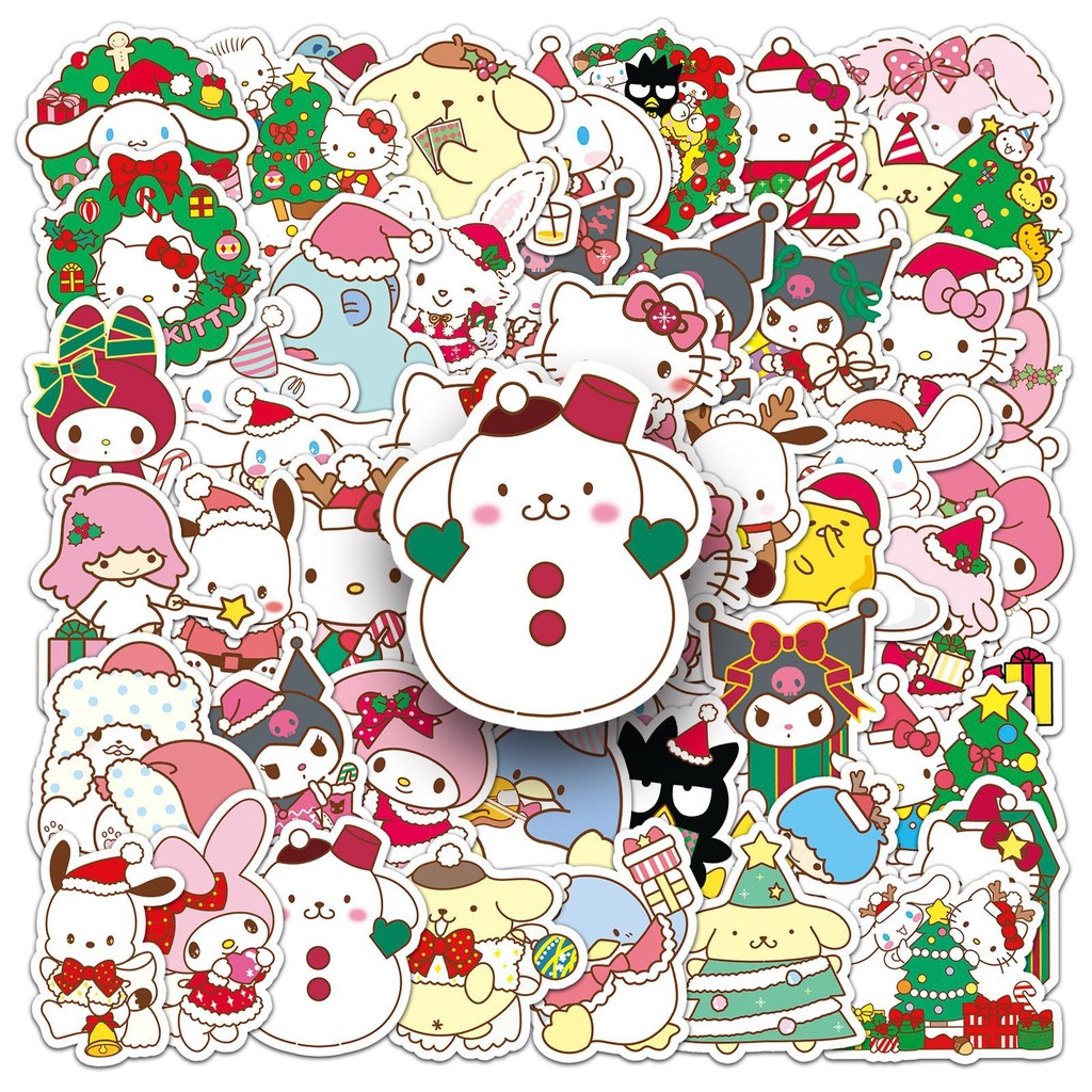 ?พร้อมส่ง?50แผ่น สติ๊กเกอร์ sticker ซานตาคลอส SANRIO คอมพิวเตอร์ Santa Claus Christmas Xmas
