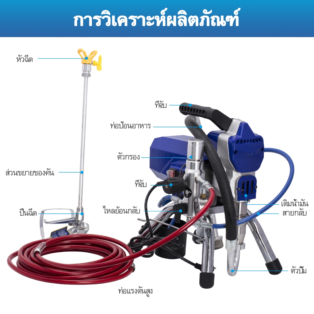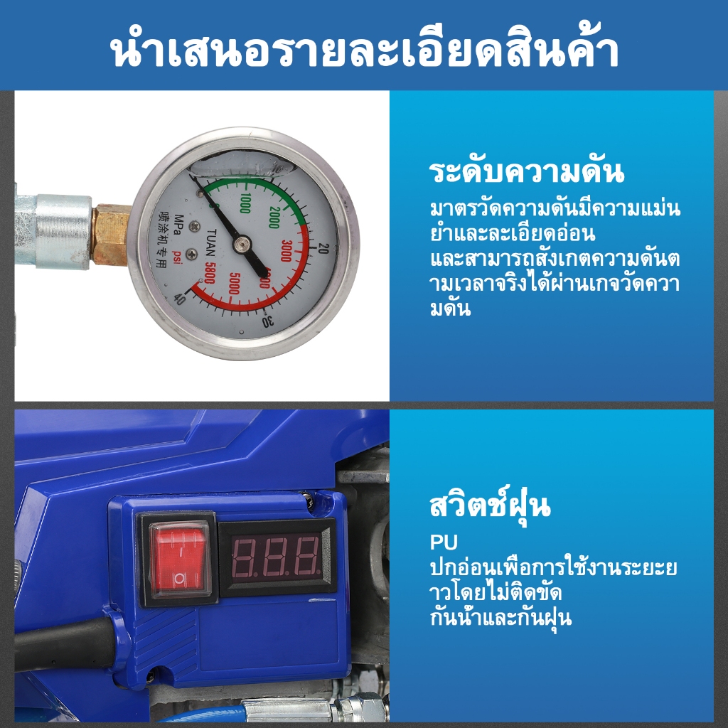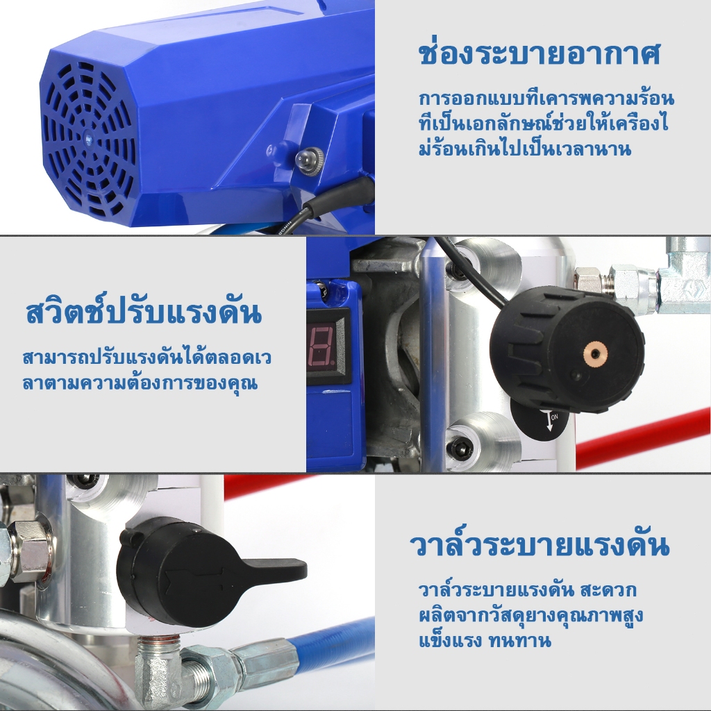 เครื่องพ่นสีสุญญากาศ 2200W เครื่องพ่นสีเกรดอุตสาหกรรม ความดันสูง สเปรย์พ่นสีแบบไม่ใช้ลม 3000PSI เครื่องพ่น 220V