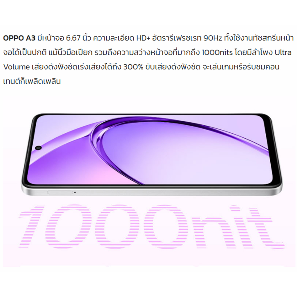 OPPO A3 (8+256GB) จอ 6.67″ Snapdragon® 6s 4G Gen1 สินค้าใหม่ เครื่องศูนย์ แท้ ประกันศูนย์ออปโป้ 1ปี #Netplus