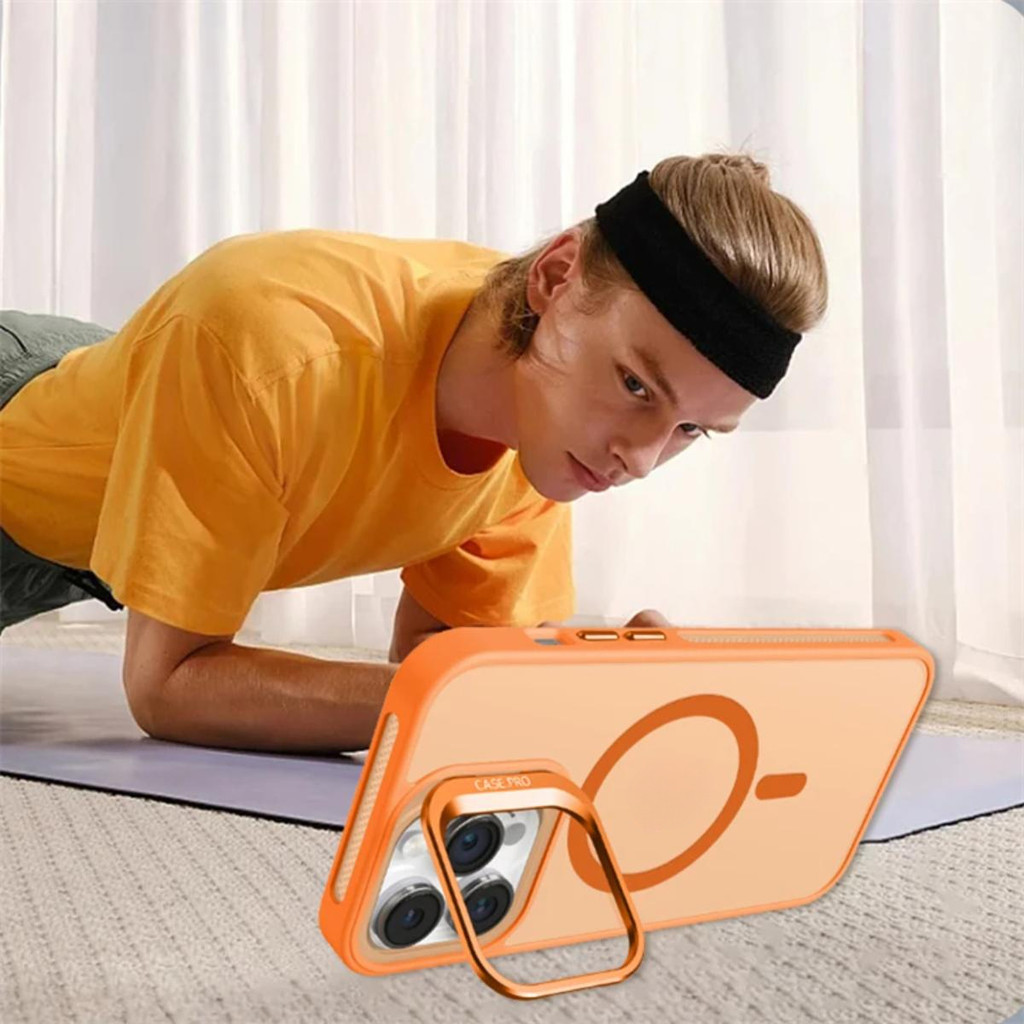 DAJII Luxury Matte Clear Hheating พร้อมที่วางโทรศัพท์ป้องกันกล้องเคสโทรศัพท์แม่เหล็กเข้ากั ใช้ได้กับ เคสไอโฟน Compatible For iPhone 17 16 15 14 13 12 11 Pro Max Plus Air Case ป้องกันลายนิ้วมือ เคส