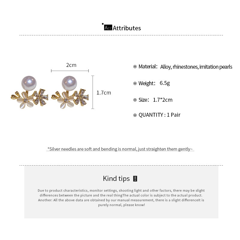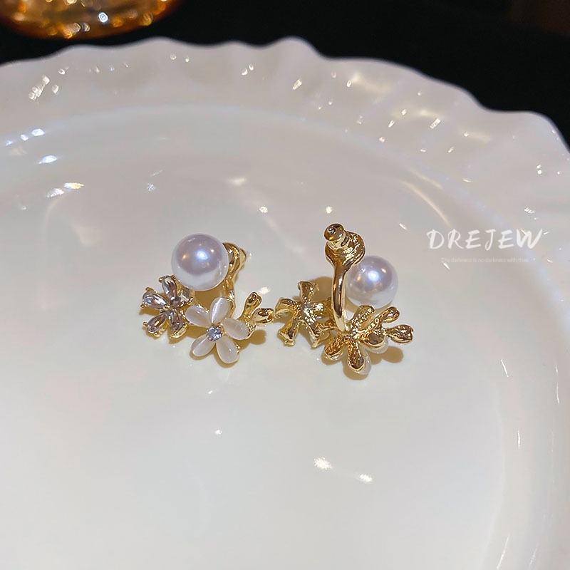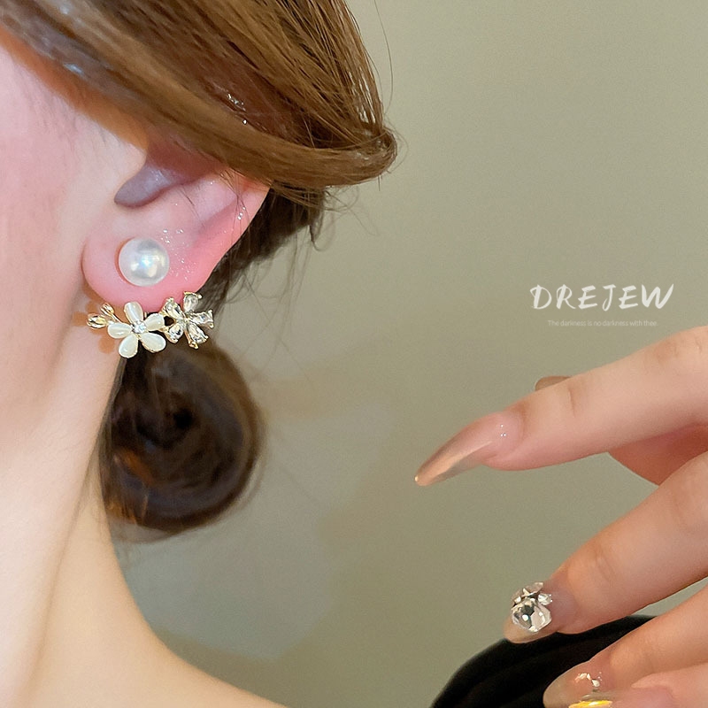 DREJEW เดรช 925 เงินเข็มดอกไม้เพชรต่างหูมุกเกาหลีระดับไฮเอนด์อเนกประสงค์ต่างหูฝรั่งเศสแสงหรูหราประณีตต่างหูใหม่สําหรับผู้หญิง ไม่แพ้ง่าย