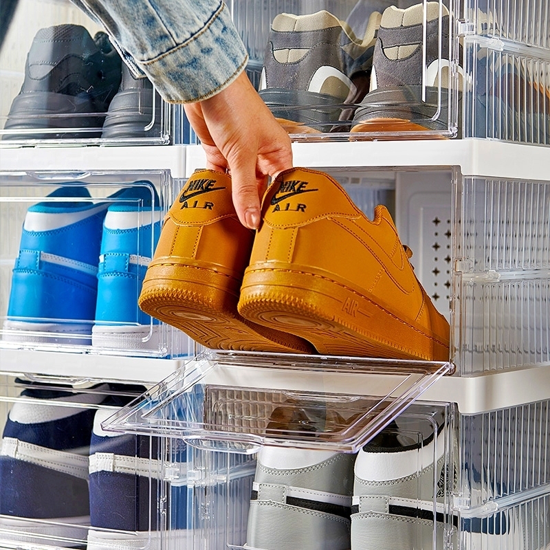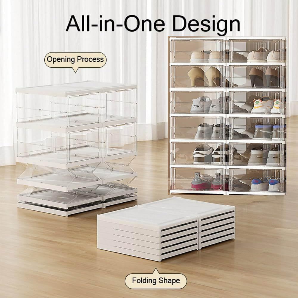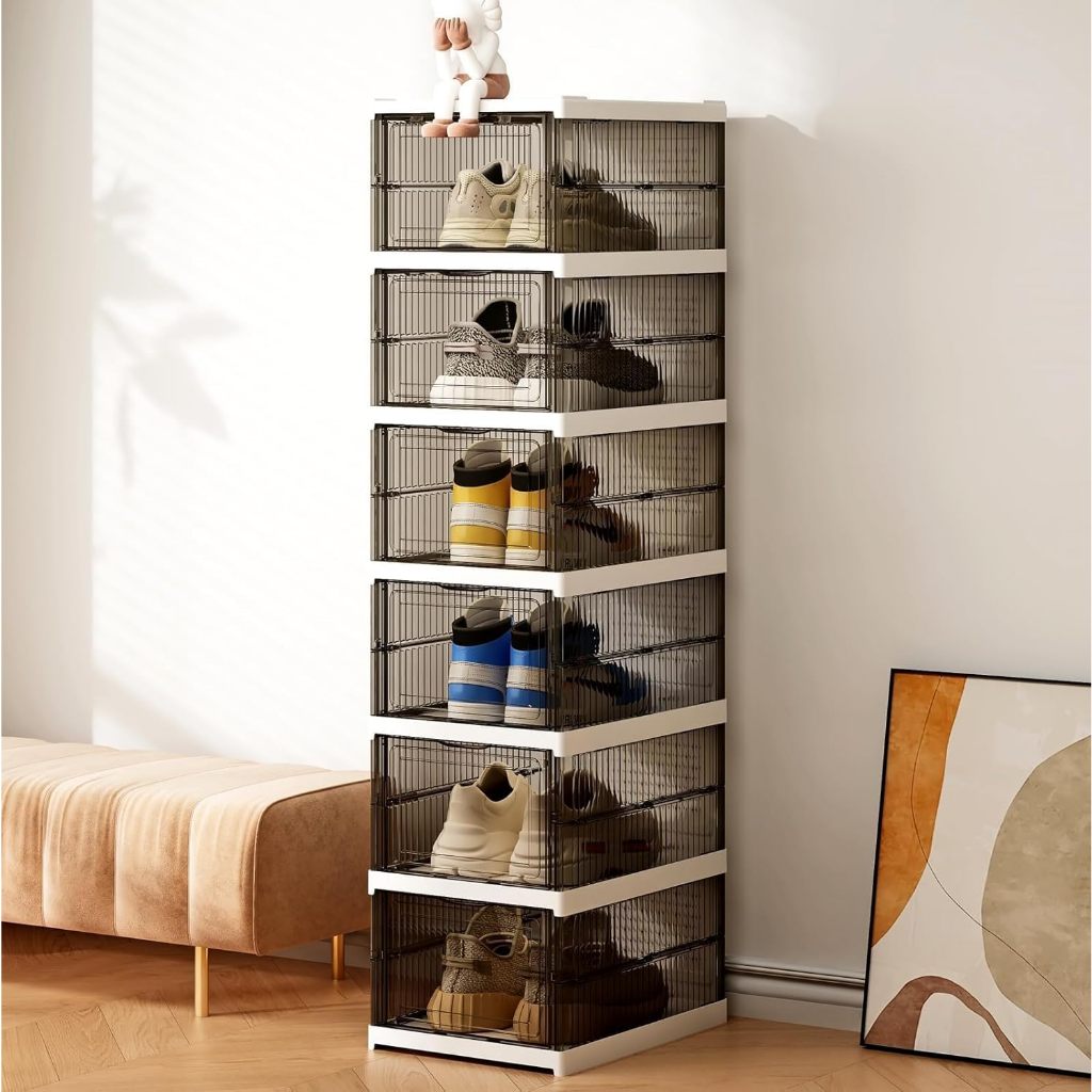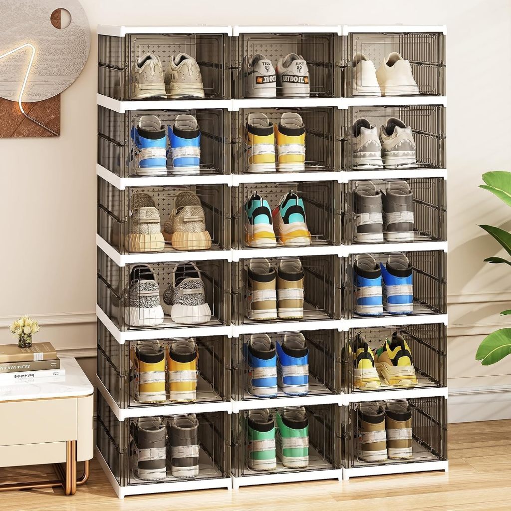 กล่องใส่รองเท้า ตู้รองเท้าพับได้ แบบไม่ต้องติดตั้ง กันฝุ่นและกันน้ำ วางรองเท้าได้หลายคู้ แบบใส