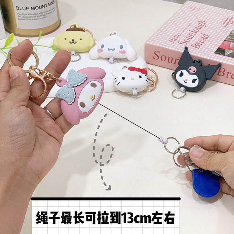 พวงกุญแจการ์ตูนน่ารักซิลิโคนรูปหัวสามมิติหัวเข็มขัดดึงง่าย ชาม จี้พวงกุญแจแบบยืดหดได้