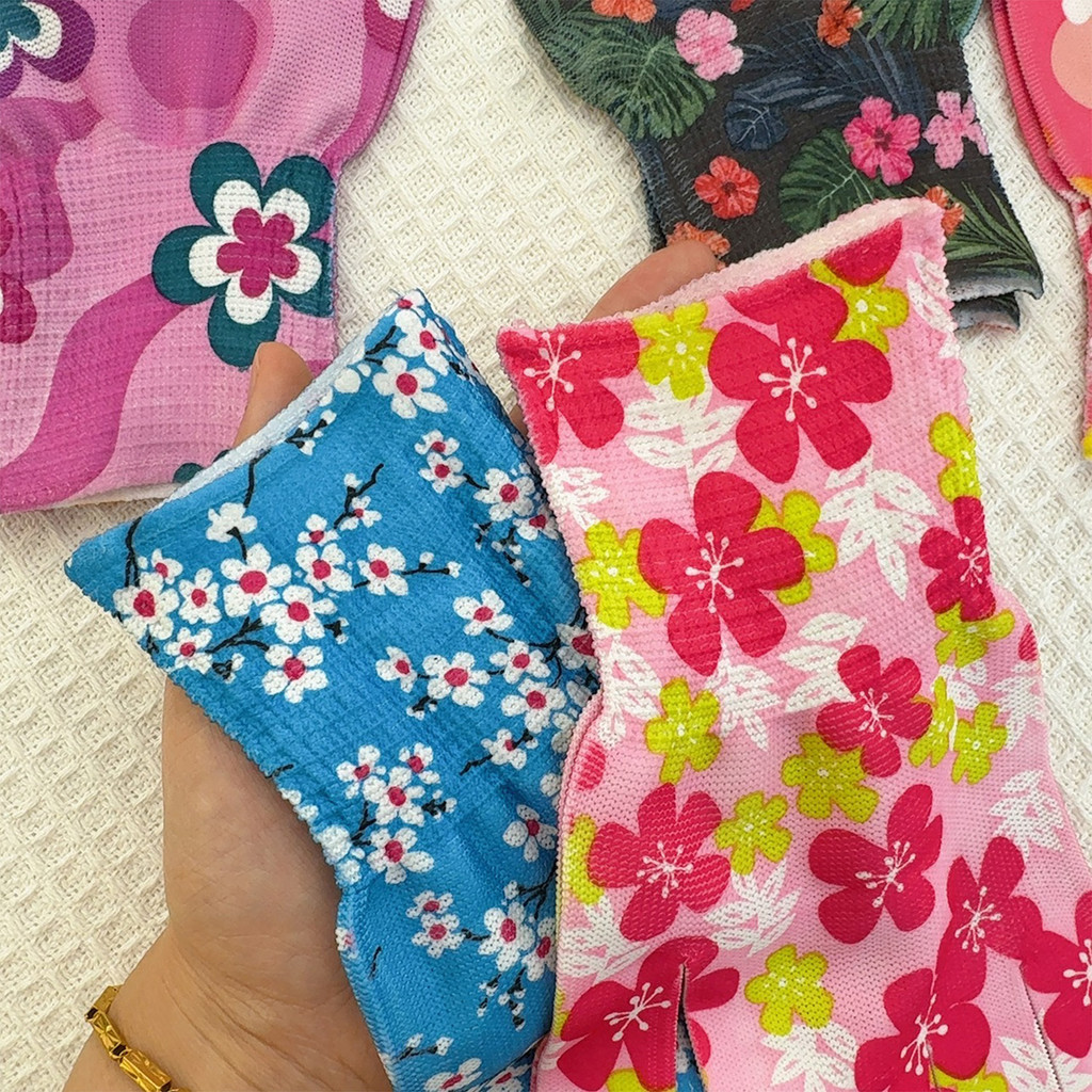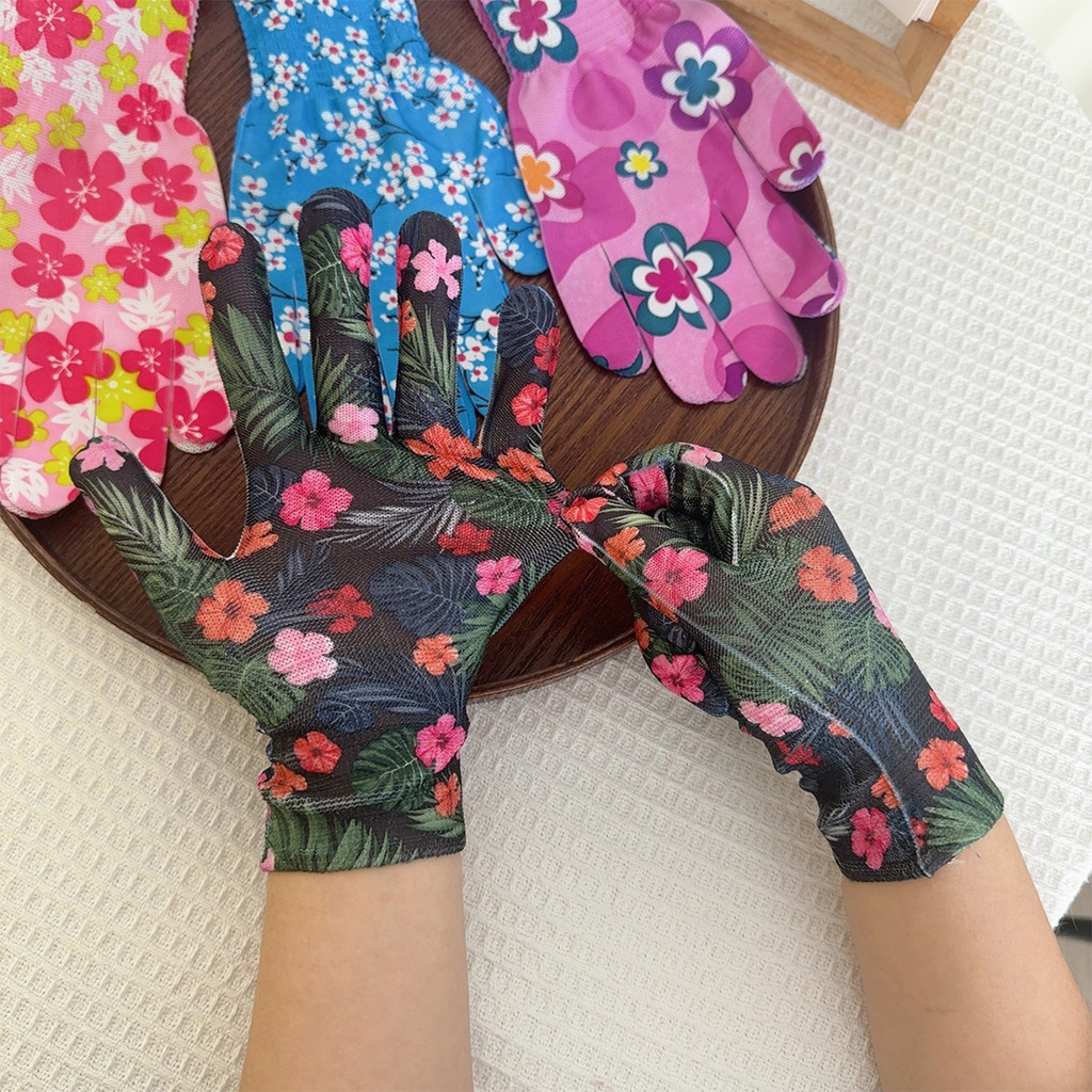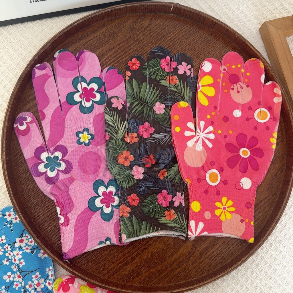 ถุงมือไนลอนพิมพ์สีชมพูสำหรับผู้หญิง ระบายอากาศดี ใช้งานได้หลากหลาย เช่น ในครัวและทำงานหนัก