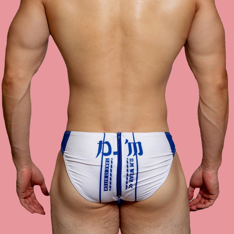 D.m กางเกงชั้นใน เอวต่ํา ผ้าโพลีเอสเตอร์ เอวยางยืด พิมพ์ลายตัวอักษร มีซิป แต่งตัวดี สําหรับผู้ชาย 3063