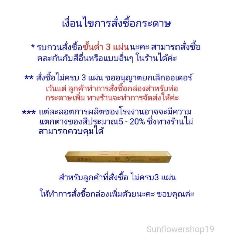 ? สั่งซื้อขั้นต่ำ 3 แผ่นขึ้นไปนะคะ สามารถสั่งรวมกับกระดาษแบบอื่นในร้านได้ค่ะ