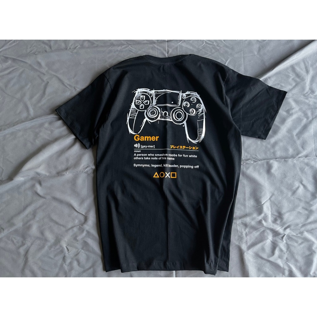 RACEROOM เสื้อยืดคอกลม สีดำ ไม่ย้วย Cotton100 Gamer PS-288