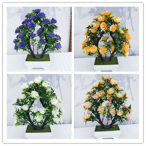 กระถางต้นไม้บอนไซประดิษฐ์ พลาสติก ดอกกุหลาบ สําหรับตกแต่งบ้าน ห้องนั่งเล่น ห้องนอน สํานักงาน ร้านค้าซูเปอร์มาร์เก็ต