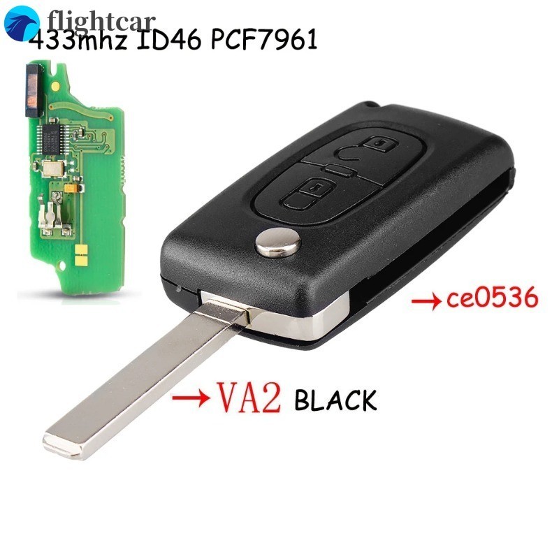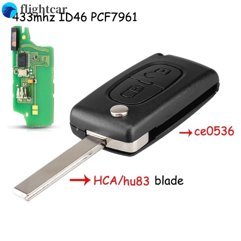 (FT) รีโมตกุญแจ 2/3 ปุ่ม สําหรับ Peugeot 207 307 407 408 308 Citroen C4 C2 ASK 433Mhz ID46 PCF7941 VA2 HCA Blade