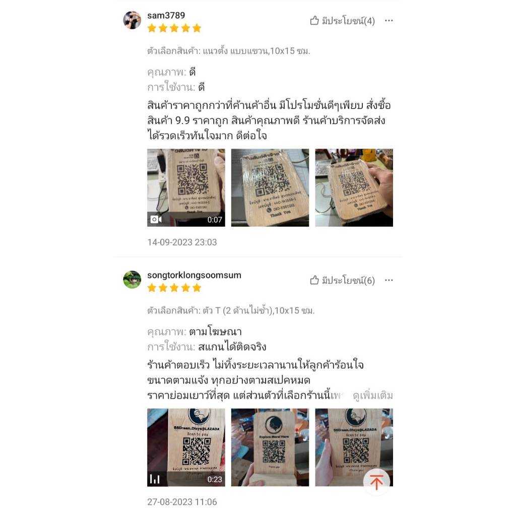 ?ลด 50% ป้าย QR โค้ดงานไม้แท้เกรด AA สำหรับใช้สแกนจ่ายเงิน ยิงด้วยเลเซอร์เทคนิคพิเศษภาพคมชัด ยิงได้ 100% เคลือบกันน้ำ