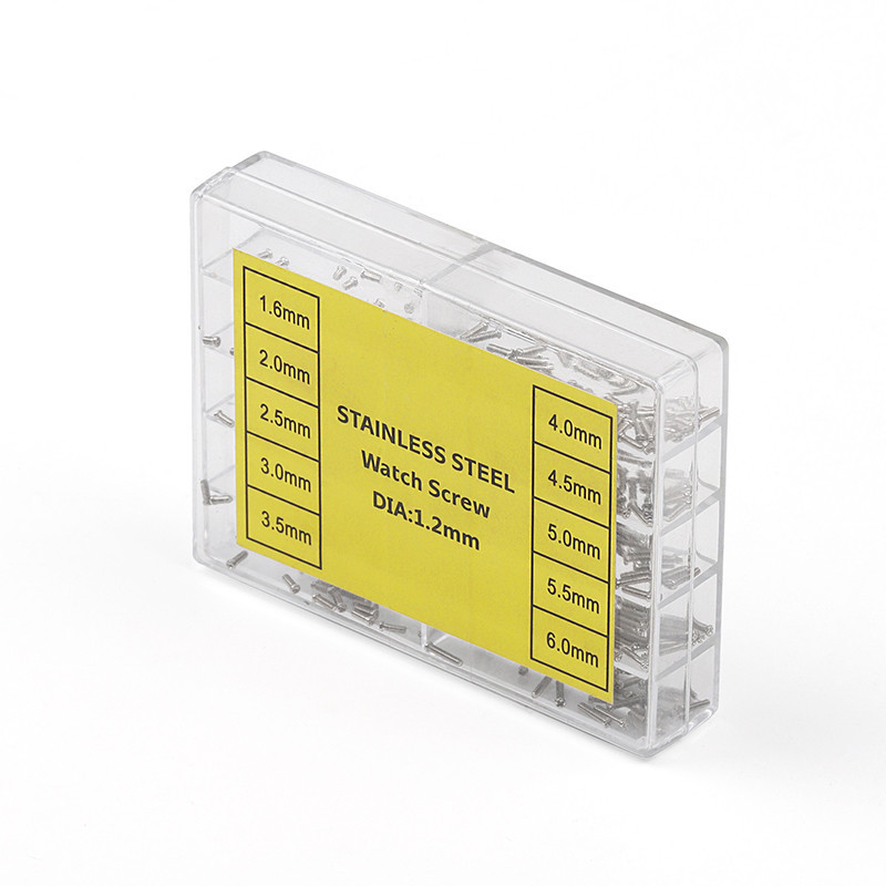 นาฬิกาโลหะฝาหลังสกรู 1.2 มม. สแตนเลสสตีลบรรจุกล่องสกรูขนาดเล็กสำหรับช่างทำนาฬิกานาฬิกาซ่อมเครื่องมือนาฬิกาอุปกรณ์เสริม