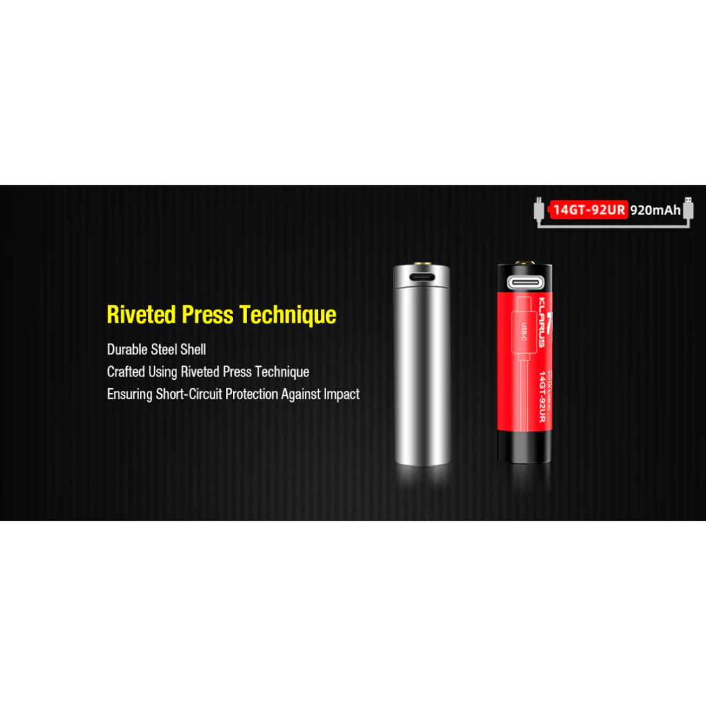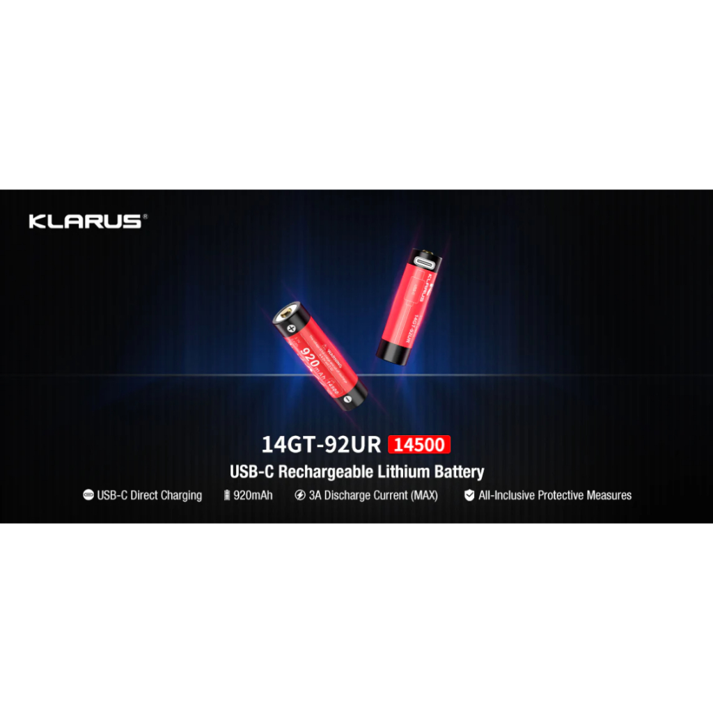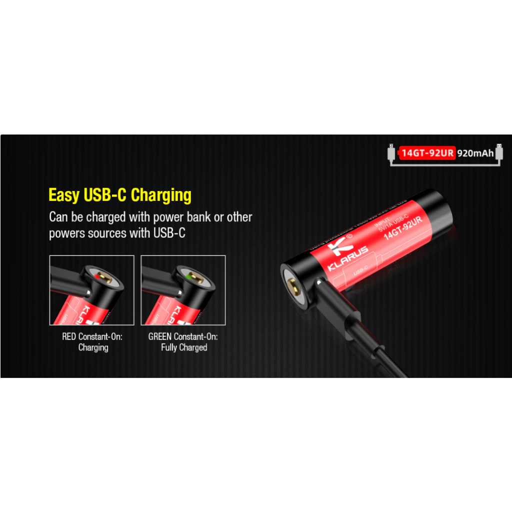 Klarus 14GT-92UR แบต 14500 ใหม่ล่าสุด จุสูงสุด 920mAh พร้อมช่องชาร์จเร็ว USB-C