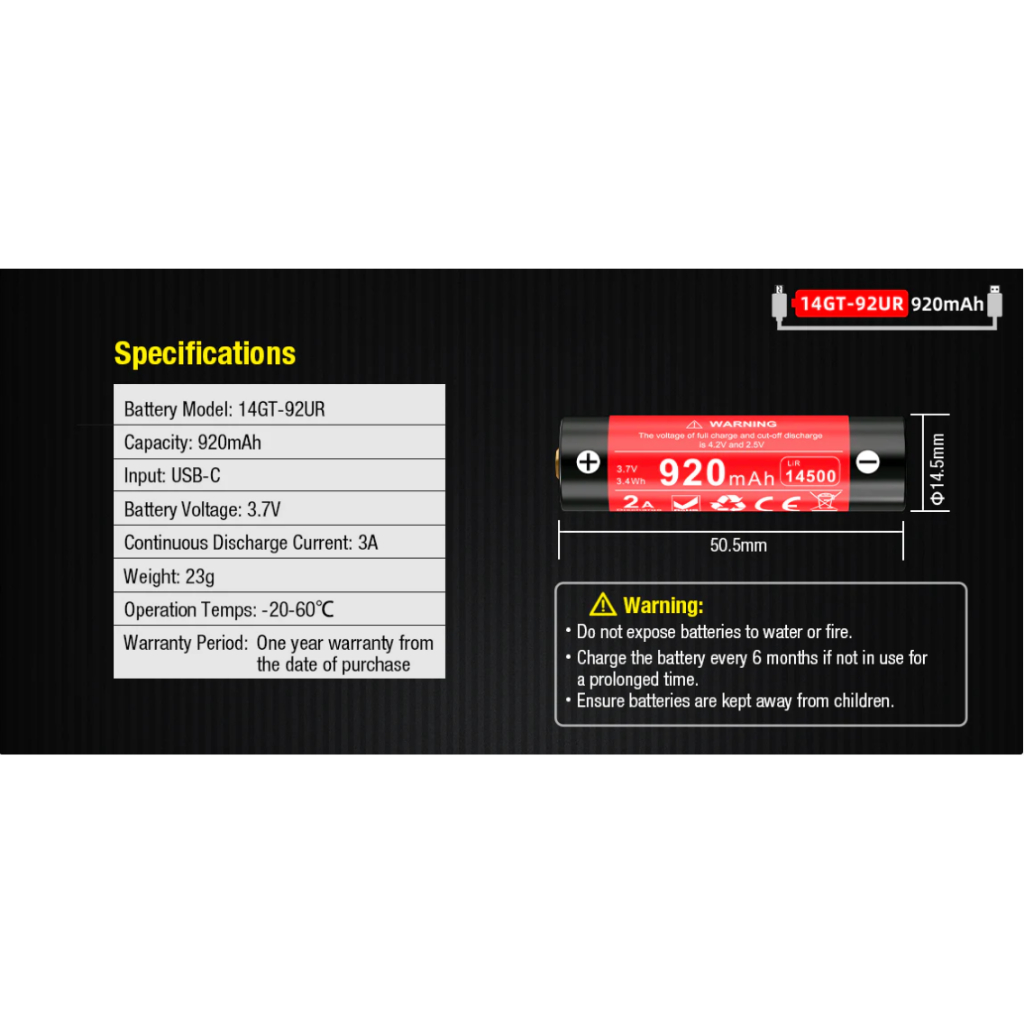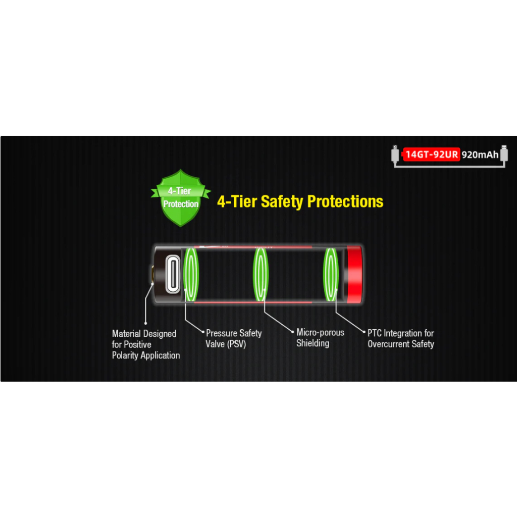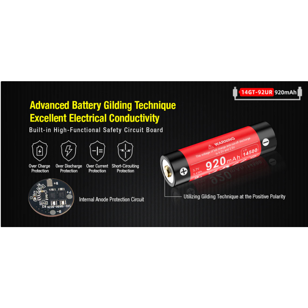 Klarus 14GT-92UR แบต 14500 รุ่นใหม่ล่าสุด จุสูงสุด 920mAh พร้อมช่องชาร์จเร็ว USB-C สะดวกมากๆ
