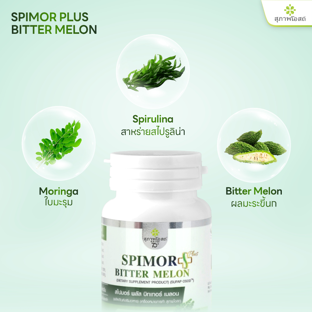 Spimor plus Bitter Melon อาหารเสริมเพื่อสุขภาพครบวงจร พลังแห่งธรรมชาติผสาน 3 สารสกัดสุดยอดจากธรรมชาติ พลังล้นเหลือดีต่อสุขภาพในเม็ดเดียวสไปรูลิน่า ใบมะรุม และผลมะระขี้นกสาหร่ายสไปรูลิน่า: แหล่งโปรตีนชั้นเยี่ยม อุดมไปด้วยวิตามิน แร่ธาตุ กรดอะมิโนจำเป็น