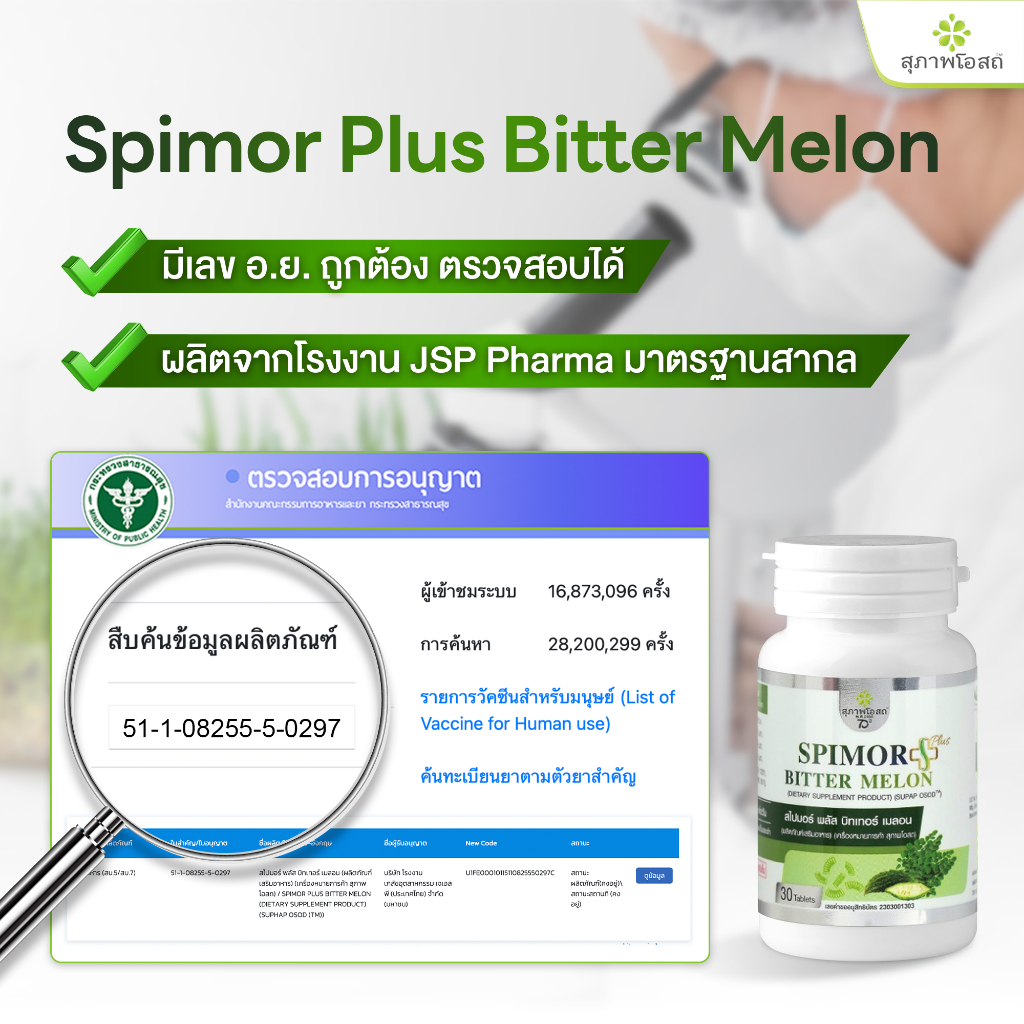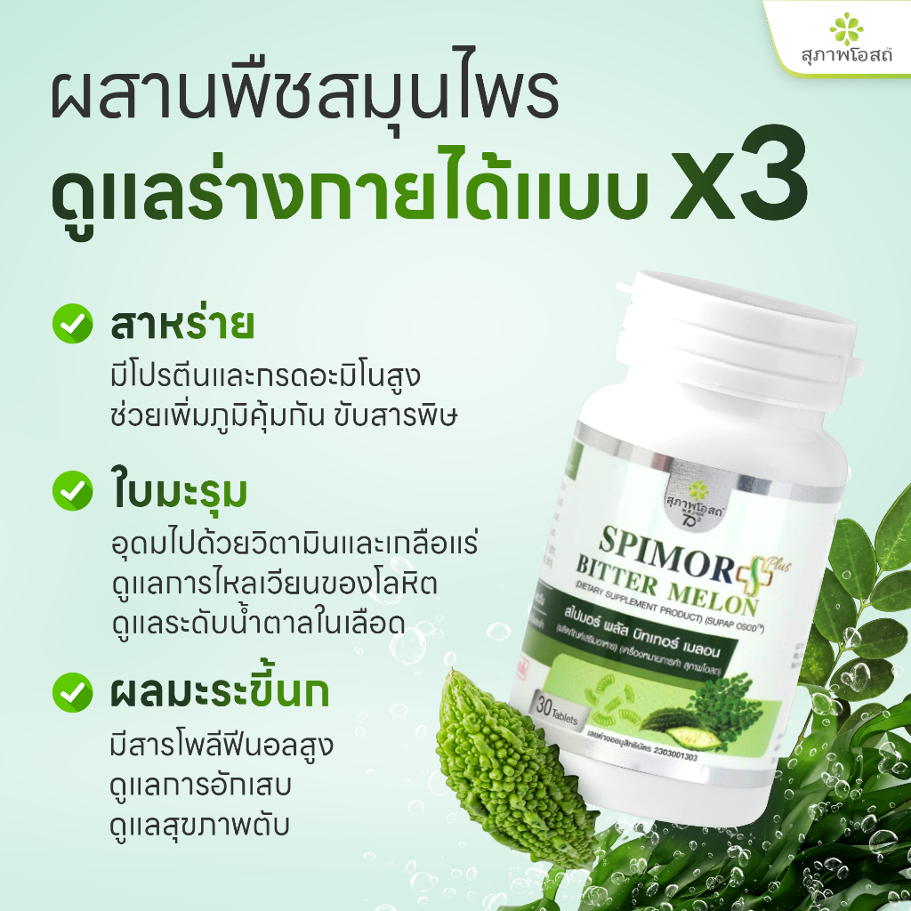 สุภาพโอสถ สไปมอร์ พลัส บิทเทอร์ เมลอน 30 แคป 7 กระปุก
