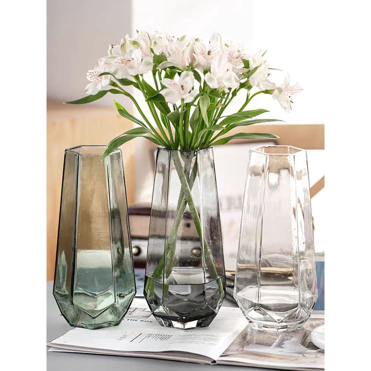 แจกันแก้วใส ลายดอกไม้ สําหรับตกแต่งบ้าน