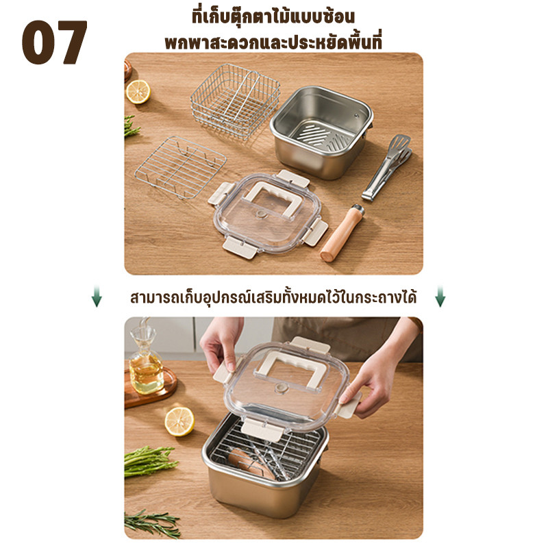 • ฝาปิดเป็นฝาแก้ว ทนความร้อนและมองอาหารเห็นได้ชัดเจน