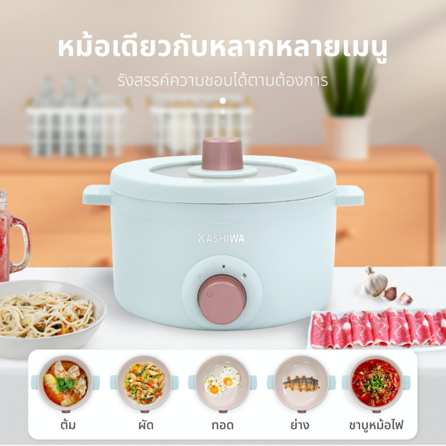 (มาใหม่ปี 2024) ? KASHIWA หม้อไฟฟ้า 1.5 ลิตร รุ่น KW-219 (สีมิ้นท์) หม้อสุกี้ หม้อต้ม ผัด แกง ทอด กระทะไฟฟ้า
