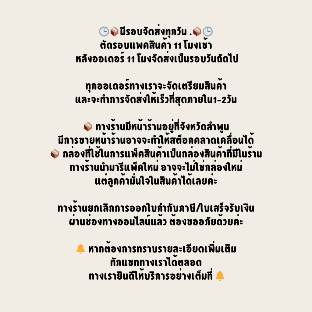 🚚 ใช้เวลาส่งสินค้า 2-7 วัน ขึ้นอยู่กับสินค้าแต่ละประเภท
