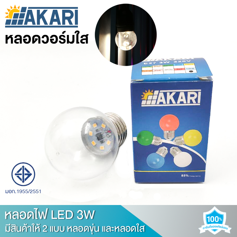 สายไฟห้อยระย้า ขั้วE27 5-20เมตร พร้อมหลอดAKARI ไฟ 220v สายระย้า LED 3W หลอดปิงปอง