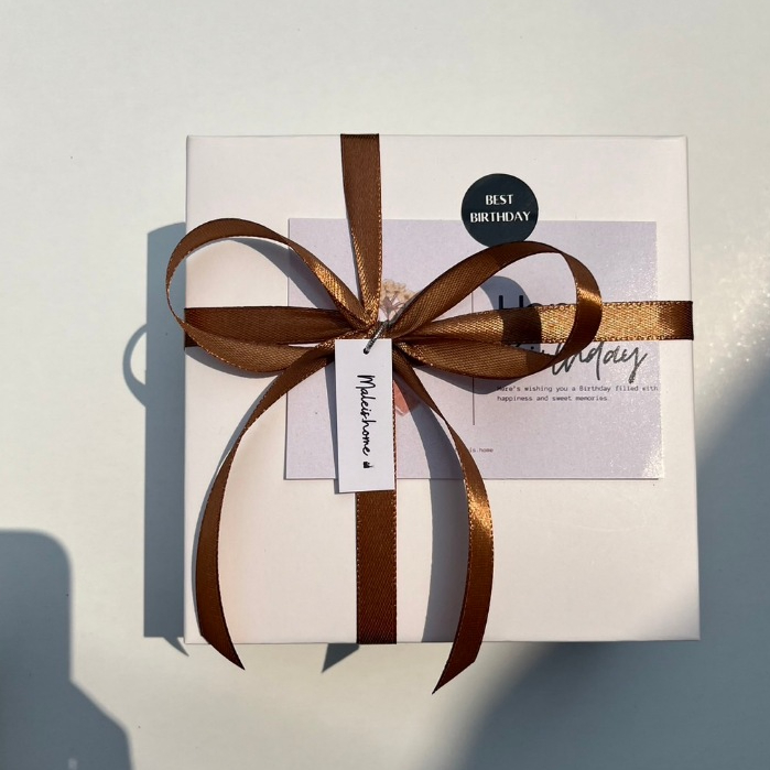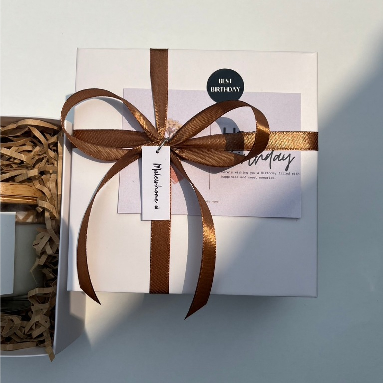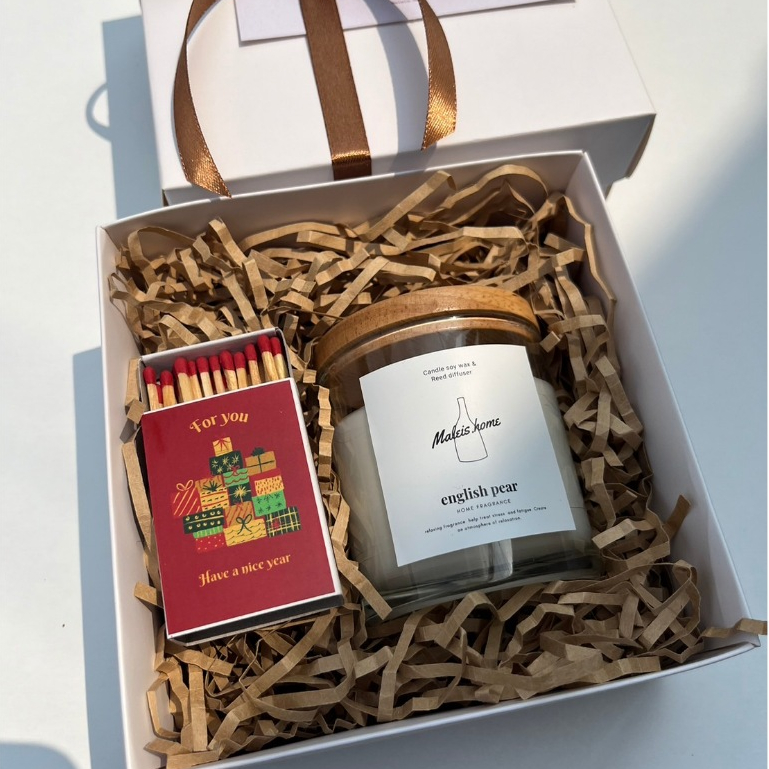 เทียนหอมของขวัญ เทียน 120 ml Size M พร้อมฝาไม้ กล่องขาว พร้อมไม้ขีดไฟ โบว์น้ำตาล