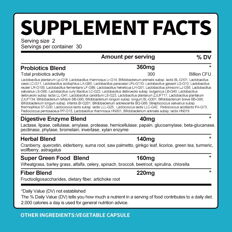 【BBEEAAUU】 พรีไบโอติก Probiotic โพรไบโอติก แคปซูลแคปซูล โปรไบโอติก 300 พันล้านแคปซูล อาหารเสริม สุขภาพพืช ดิจิทัล และสุขภาพถั่ว ภูมิคุ้มกัน พรีไบโอติก ผสมผสาน สําหรับผู้ชายและผู้หญิง