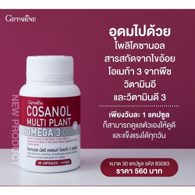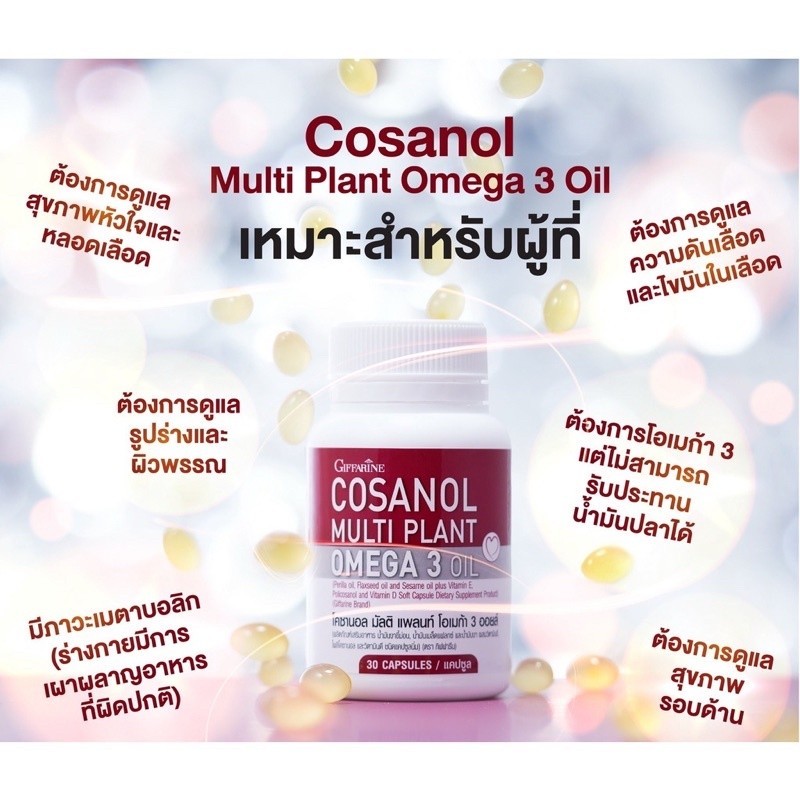 [30เม็ด] Giffarine Cosanol Omega 3 Oil ลดไขมัน บำรุงตับ กิฟฟารีน โคซานอล โอเมก้า3 Multi Plant