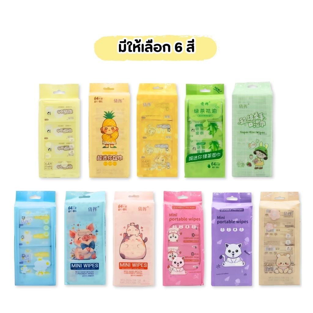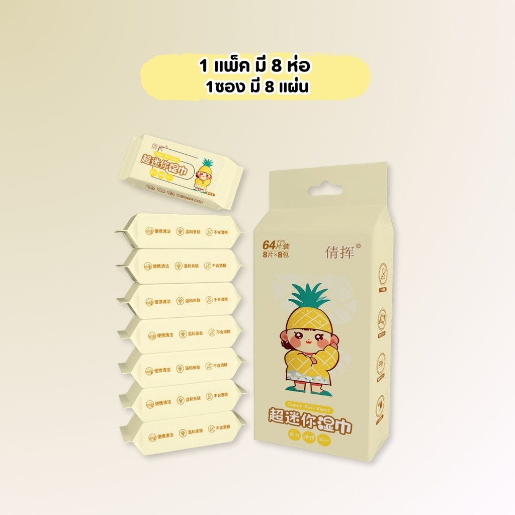 ทิชชู่เปียกแบบพกพา ทิชชู่เปียกขนาดเล็กจิ๋ว 1แพคมี8ห่อ ทิชชู่เด็ก ลายน่ารักๆ เนื้อสัมผัส เช็ดชูเปียก ปราศจากแอลกอฮอล์