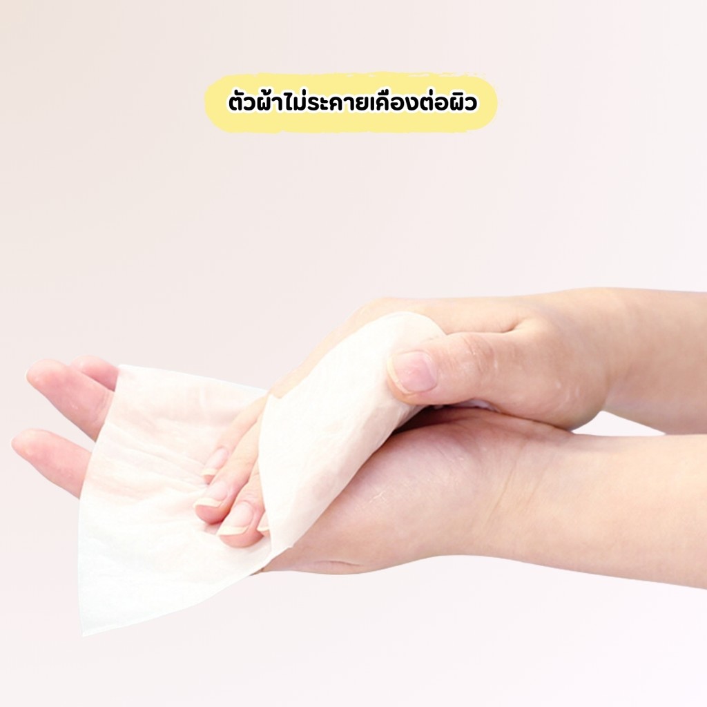 จุดเด่น : ตัวผ้าไม่ระคายเคืองต่อผิว ปราศจากแอลกอฮอล์ มาพร้อมกับกับแพ็คเกจน่ารัก มีหูหิ้วพา โดย 1แพ็ค มีผ้าเปียก 8ซอง ช่วยในการเช็คทำความสะอาด เช็คมือ เช็คหน้า โดยผ้านี้ปราศจากแอลกอฮอล์ หรือใช้เช็คสิ่งของ