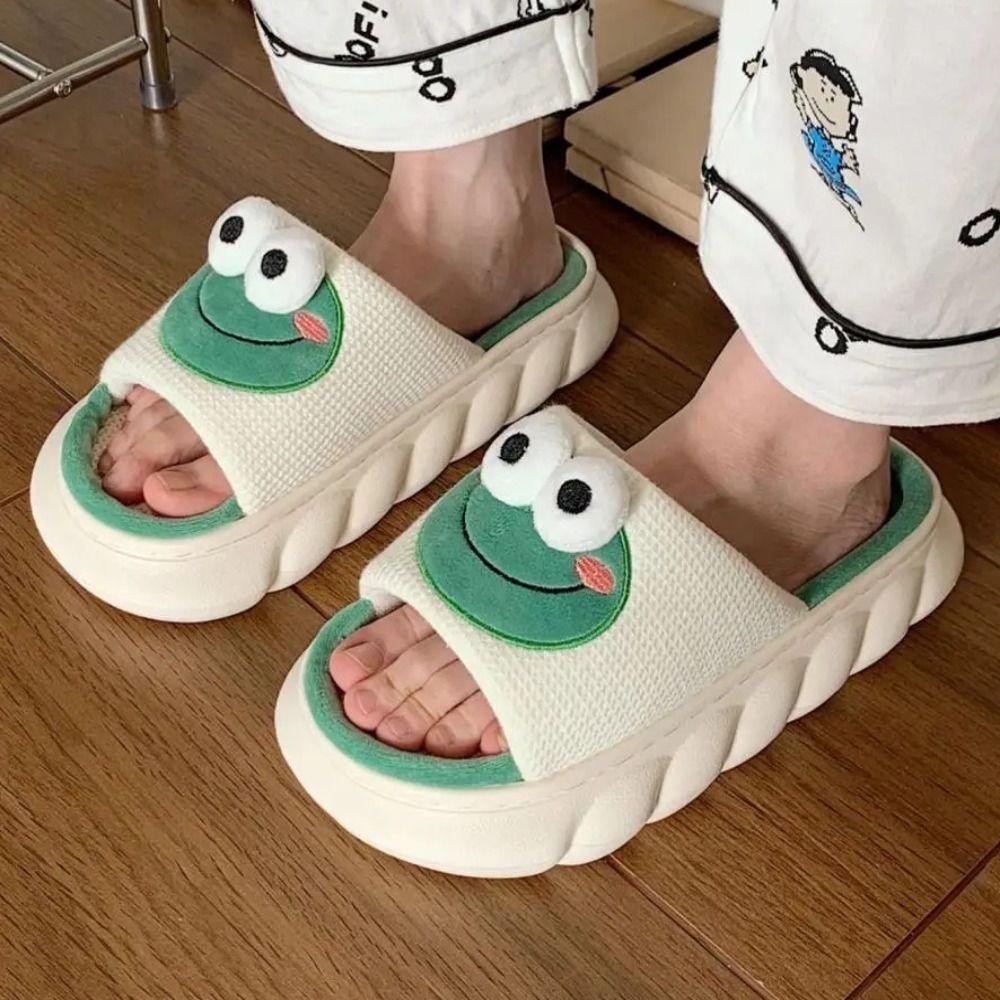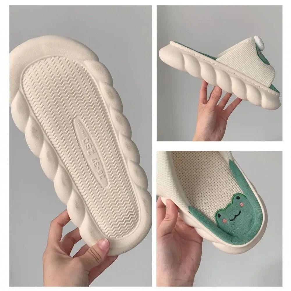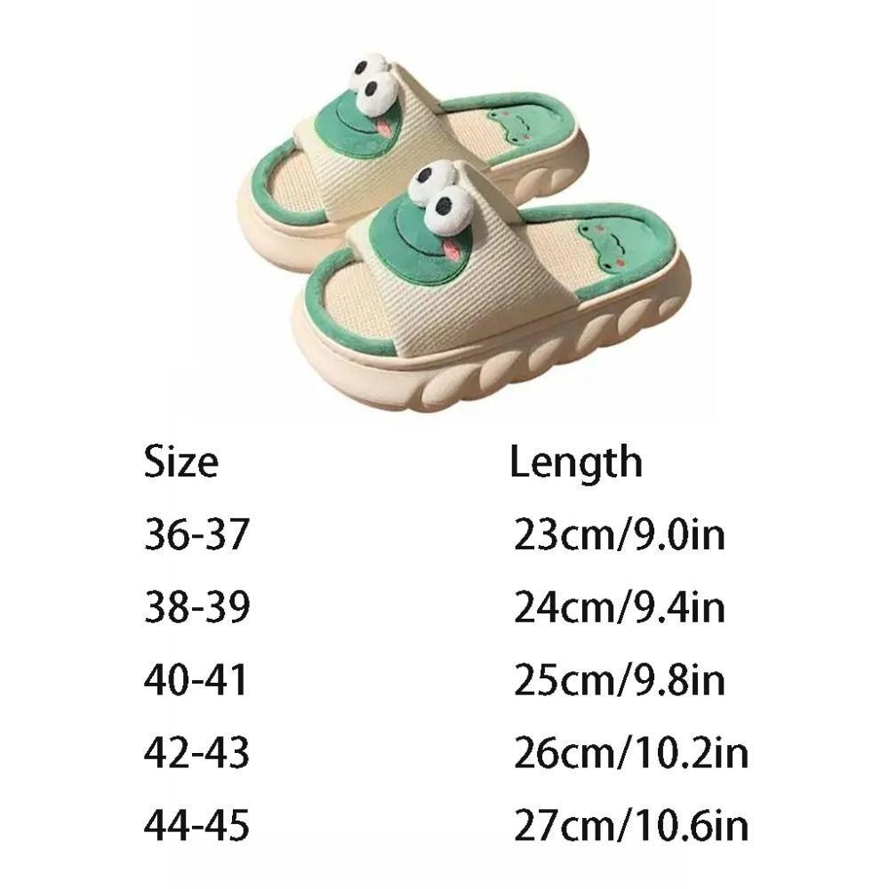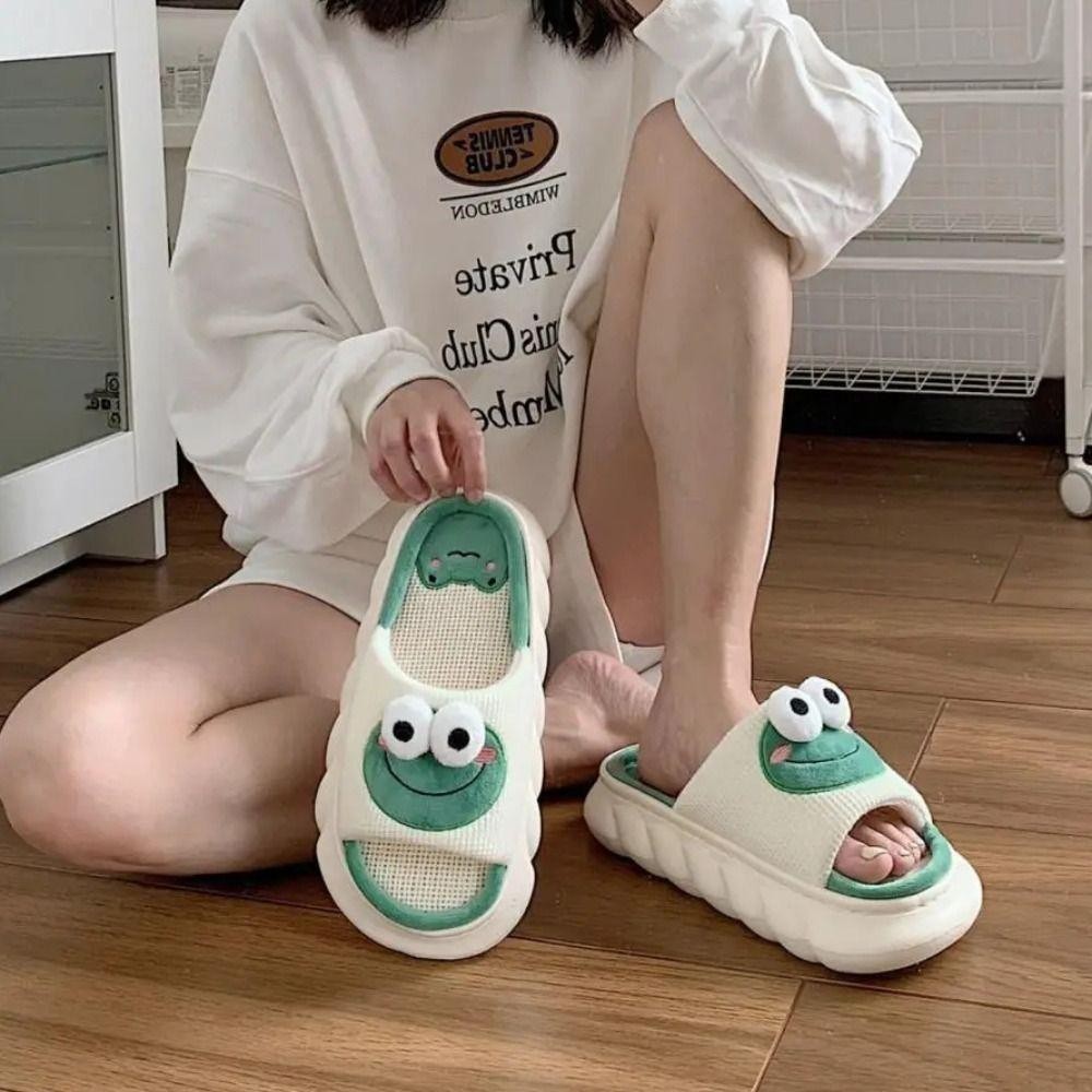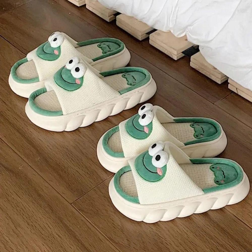 รองเท้าแตะ HUAN, รองเท้าแตะผ้าลินินการ์ตูนกบ, ป้องกันกลิ่นคุณภาพสูง Antiskid รองเท้าแตะผ้าฝ้ายทนต่อการสึกหรอคนรัก