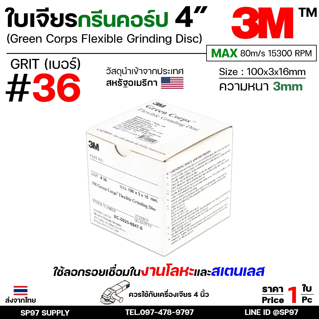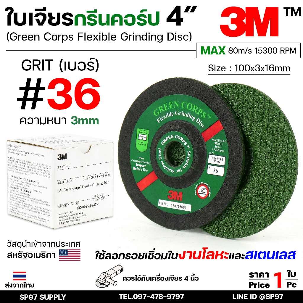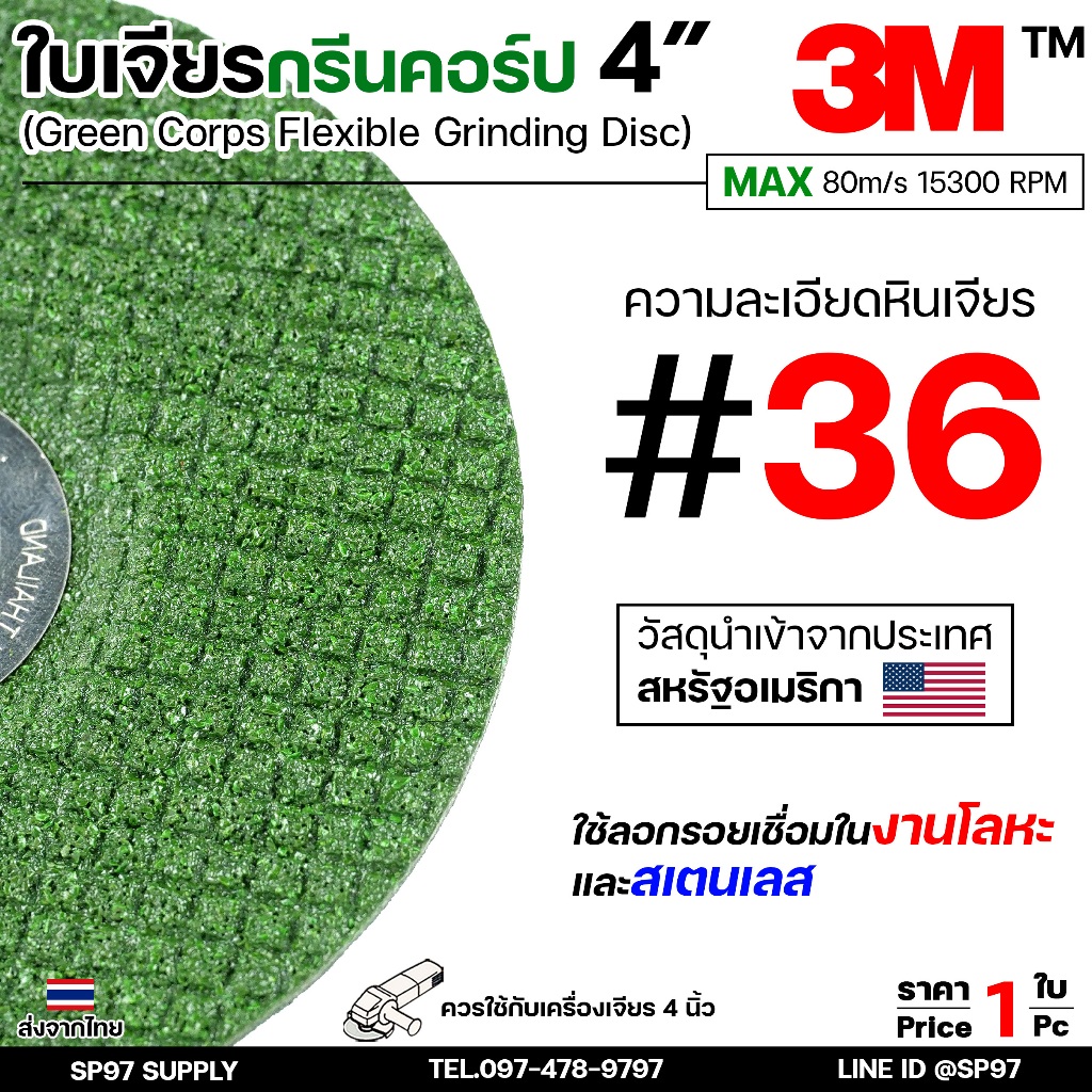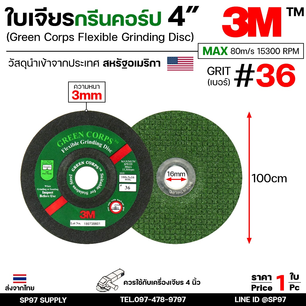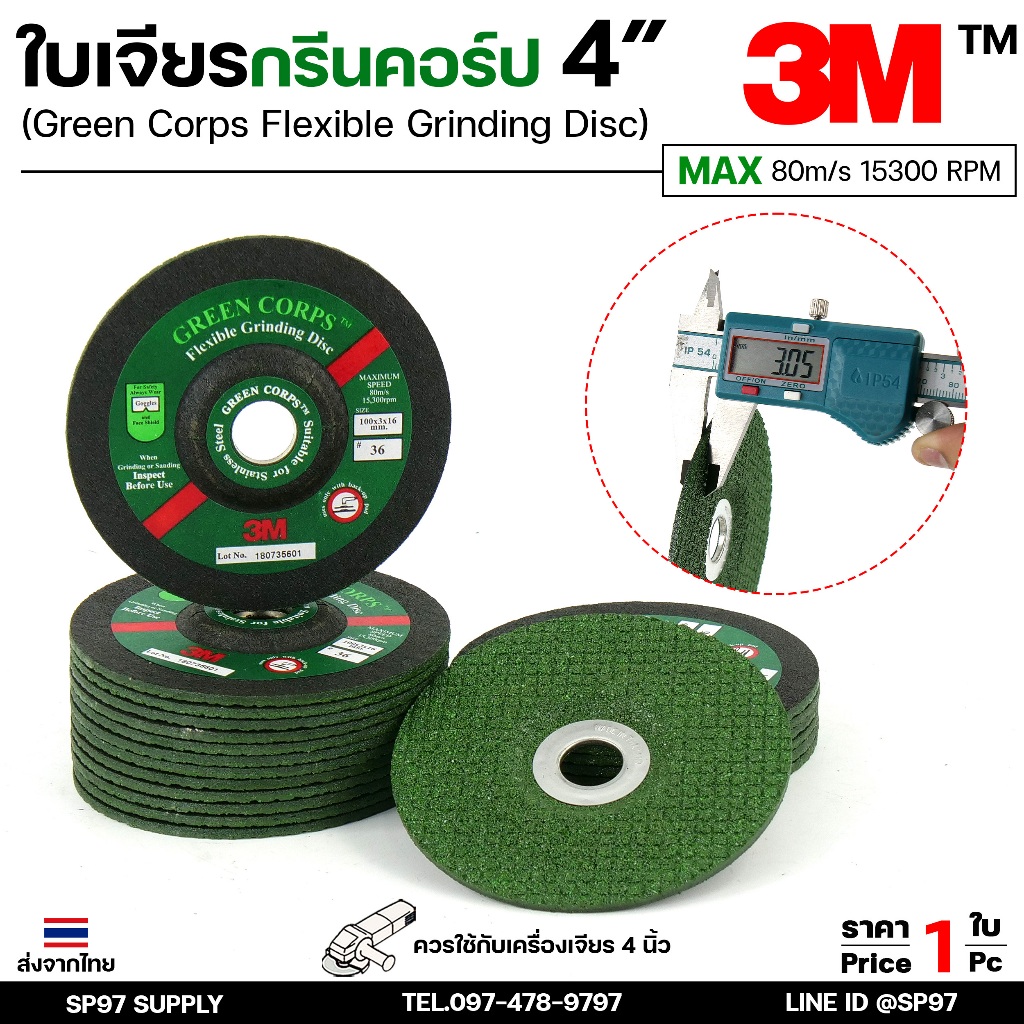3M ใบเจียร กรีนคอร์ป ขนาด 4นิ้ว สีเขียว หนา3มิล สำหรับ เจียสแตนเลส เจียเหล็ก ลอกรอยเชื่อม งานโลหะ (ราคา1ใบ)