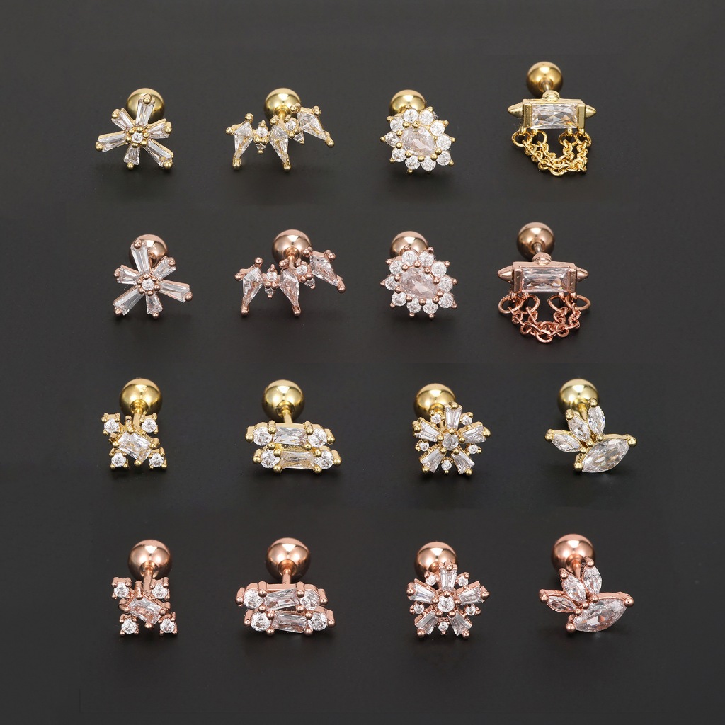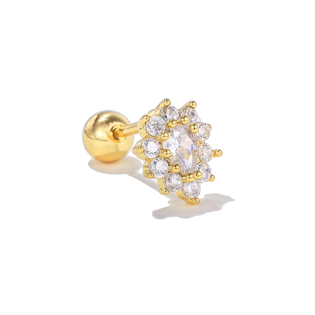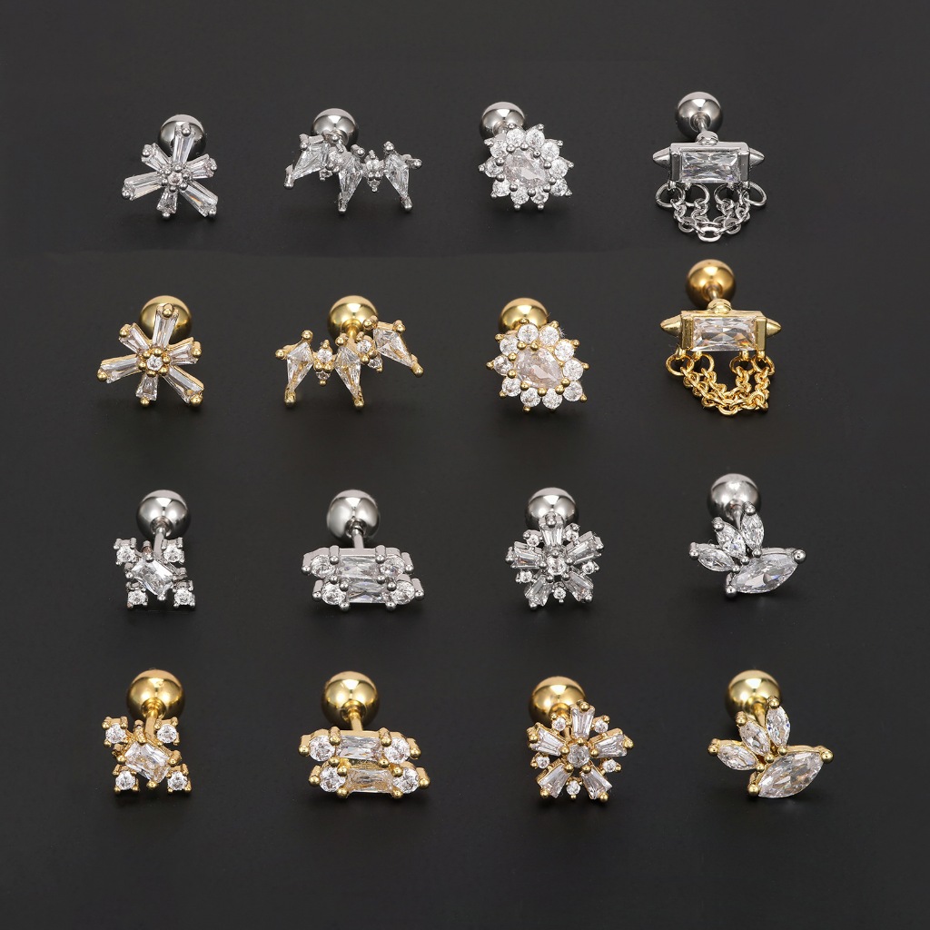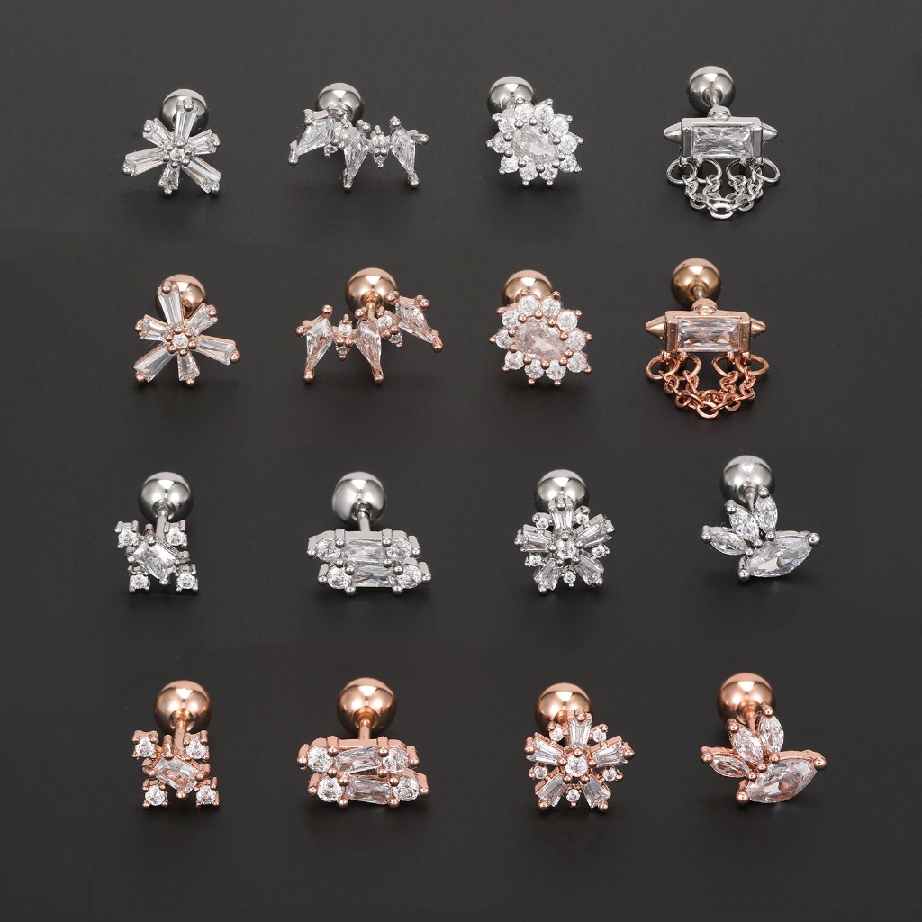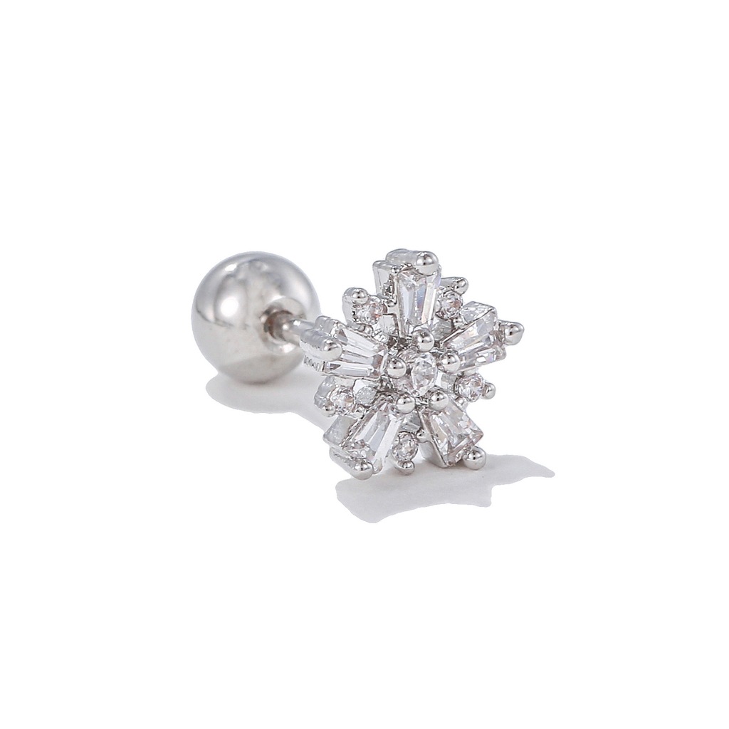 ต่างหูสตั๊ด สเตนเลส 316L รูปเกล็ดหิมะ ประดับเพทาย เครื่องประดับ สําหรับผู้หญิง 1 ชิ้น