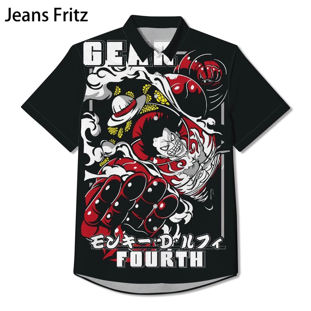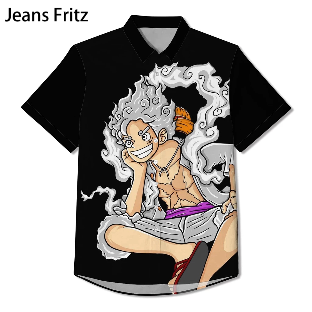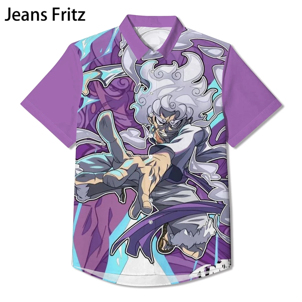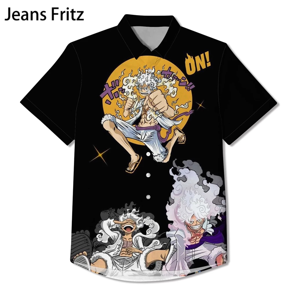 เสื้อเชิ้ต คอปก พิมพ์ลายอนิเมะ One Piece GEAR 5 LUFFY SUN GOD NIKA