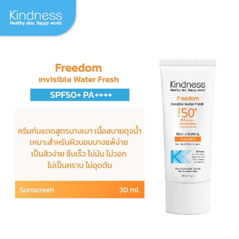 ส่งด่วน!! KINDNESS – Freedom Invisible Water Fresh SPF50+ PA++++ (30 ml.) ครีมกันแดด
