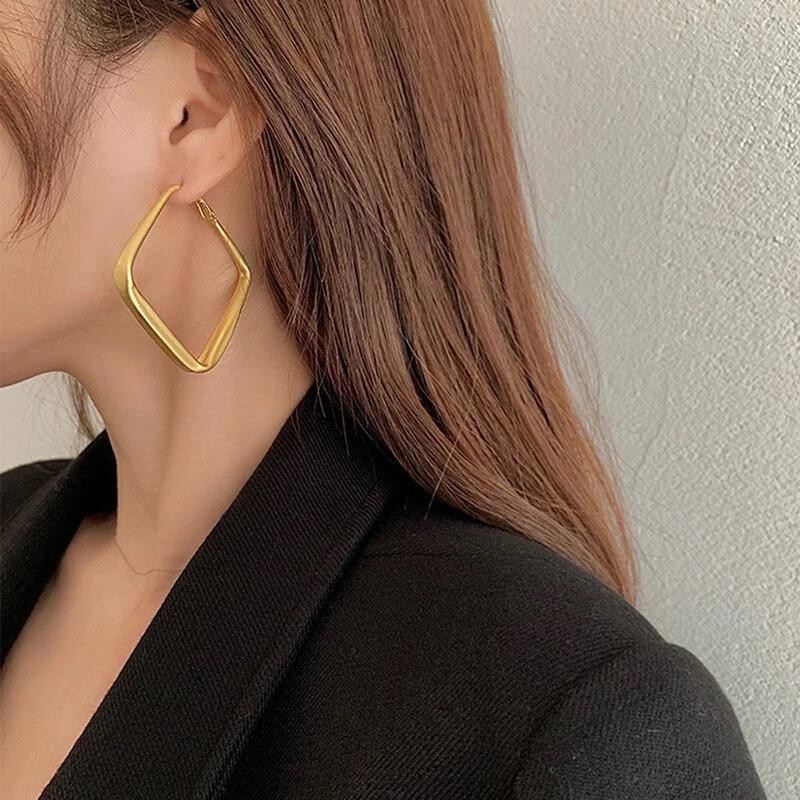 เครื่องประดับ ต่างหูโลหะ ทรงสี่เหลี่ยม ไม่มีรู ทรงเรขาคณิต ไม่ต้องเจาะ CeyEr1067