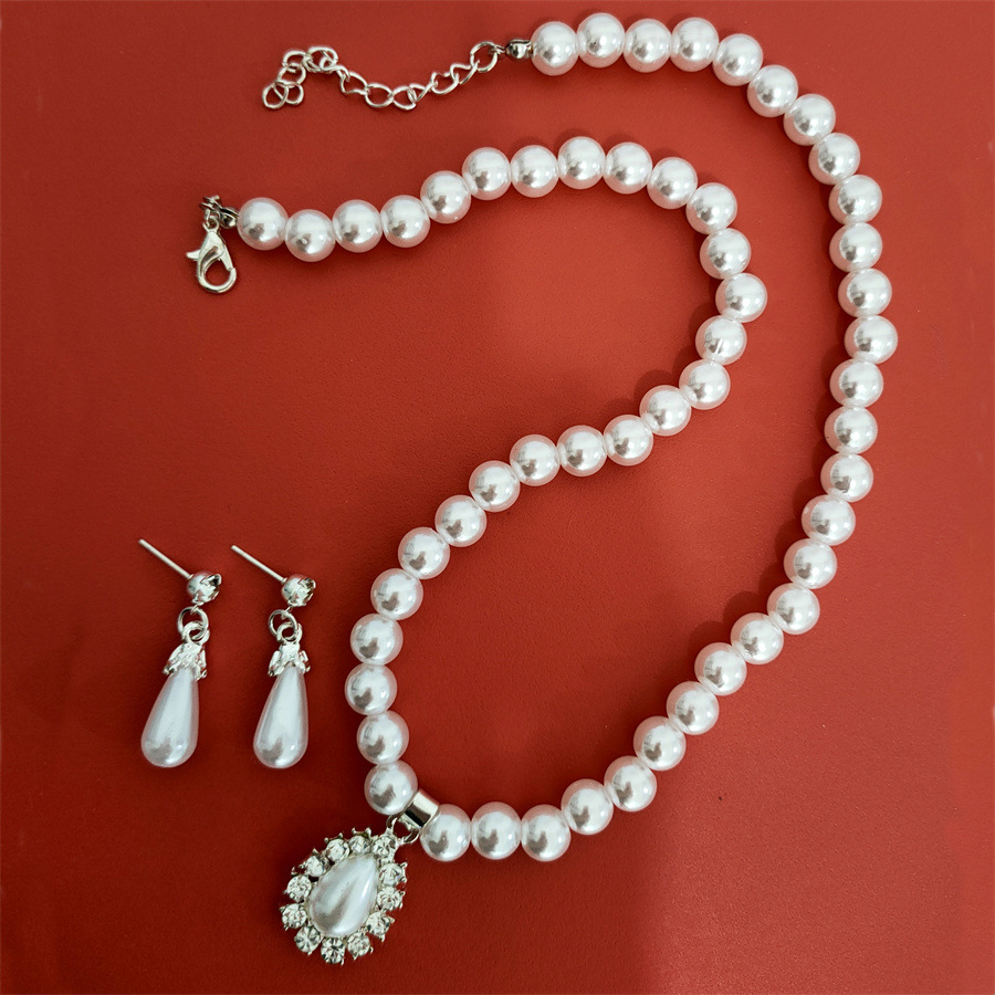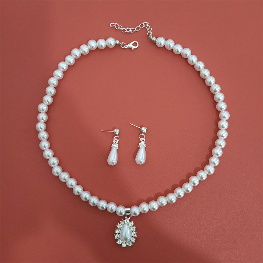 ต่างหูมุกหรูหราและชุดสร้อยคอ Waterdrop Diamond-Encrusted เจ้าสาวแฟชั่นอุปกรณ์เสริมอินเทรนด์