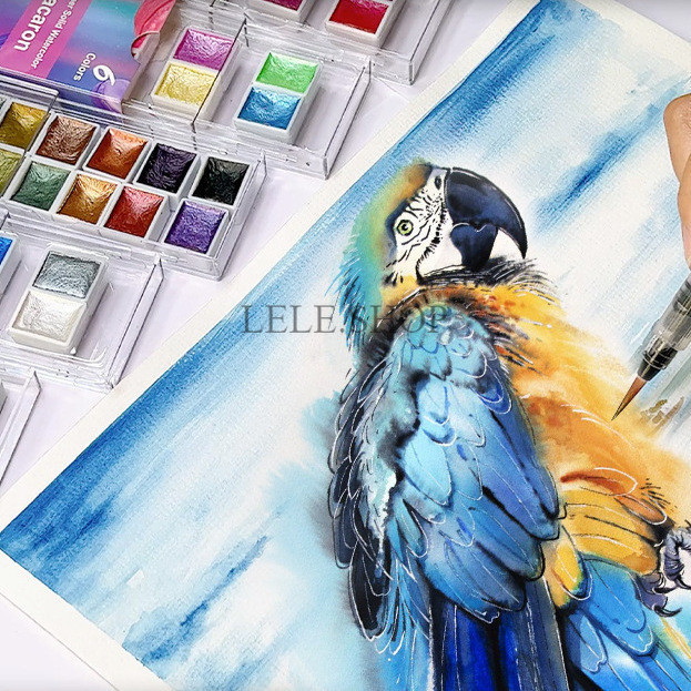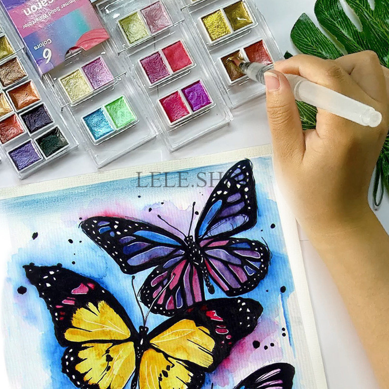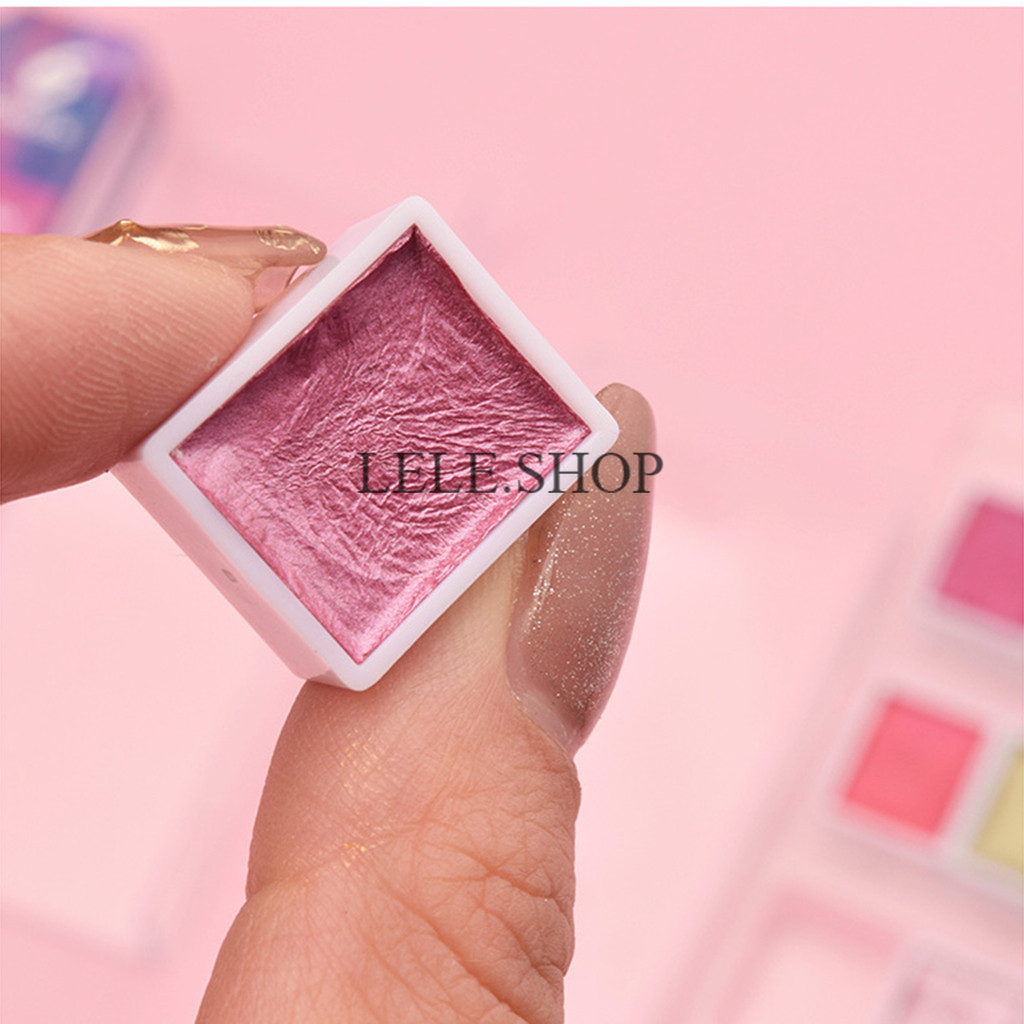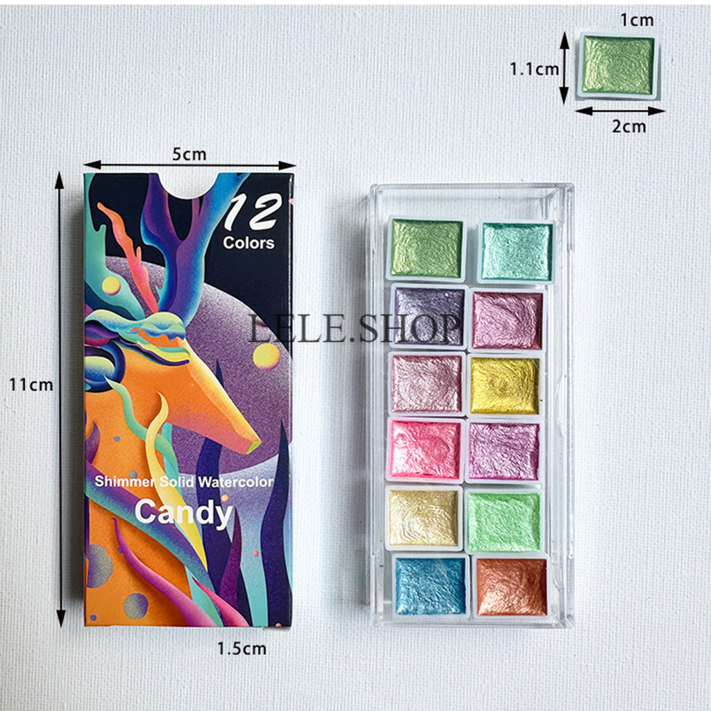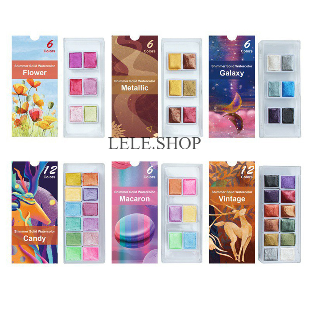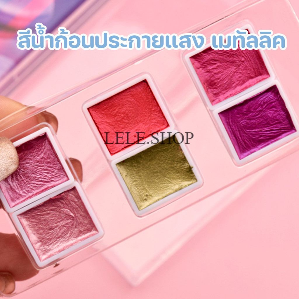 สีน้ำก้อนประกายแสง แบบเมทัลลิค 6/12 สี สำหรับทำงานศิลปะ วาดภาพ เพ้นท์เล็บได้ อุปกรณ์ศิลปะ สินค้ามีพร้อมส่ง