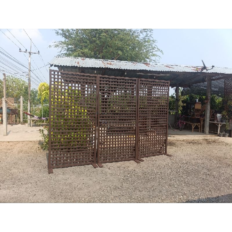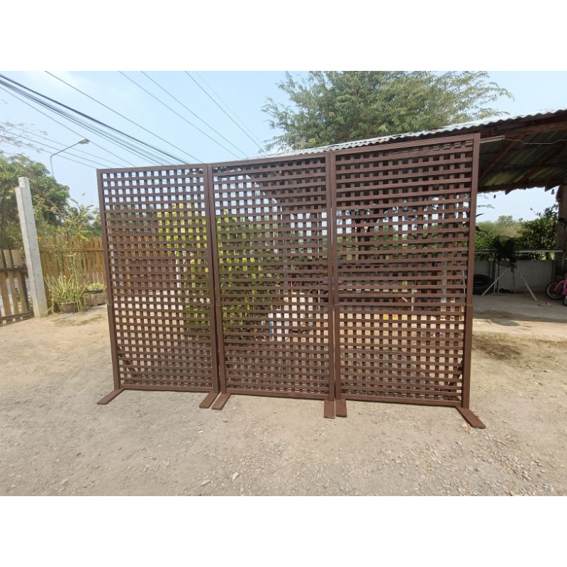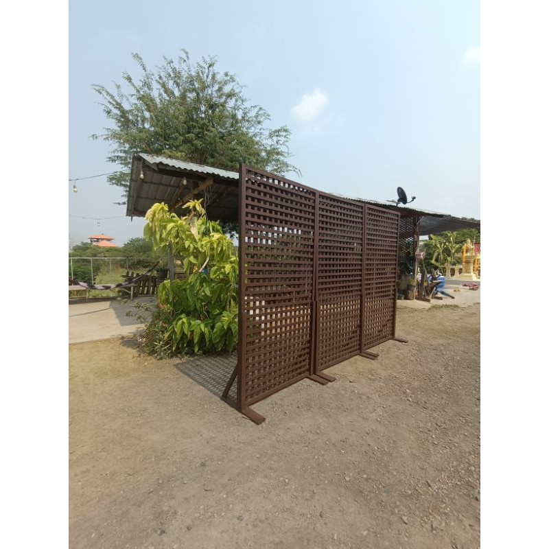 ระเเนงไม้สูง 180 ซม. รั้วระเเนง ระเเนงไม้สำเร็จรูป รั้วไม้ พร้อมขาตั้ง เเต่งสวน เเต่งบ้าน สีโอ๊ค(ออกดำ) มีหลายขนาด ฉากกั