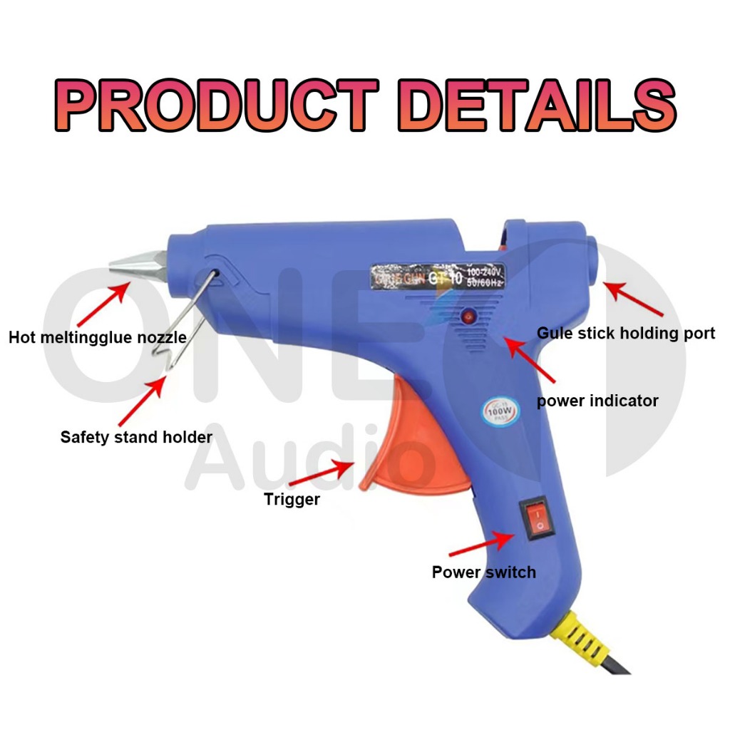 OneAudio ปืนกาวแท่ง ปืนยิงกาว Super Hot Melt Glue Guns ปืนยิงกาวร้อน GT-10 100W (สีน้ำเงิน) 11mm