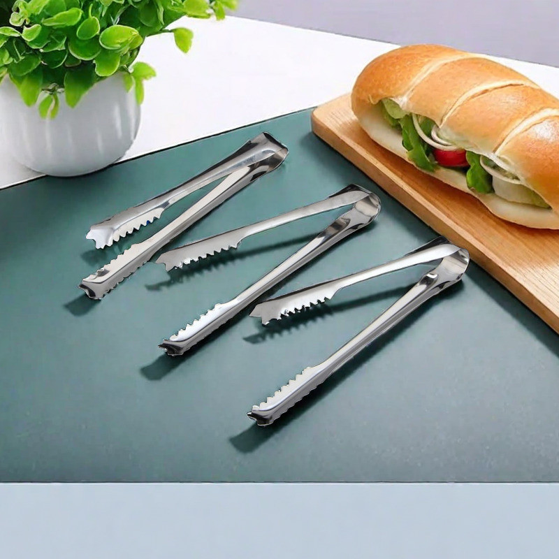 ที่คีบน้ำแข็งสแตนเลสขนาดเล็ก ที่คีบอาหารในครัว สำหรับการอบเนื้อ