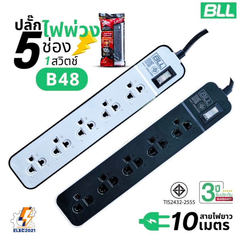 ปลั๊กไฟ มอก.ของแท้100% มอก.2432-2555 BLLรองรับกำลังไฟ 2300วัตต์ ปลั๊กพ่วง มีฟิลเตอร์ตัดไฟ ปลั๊กไฟ10เมตร ปลั๊กไฟ5เมตร