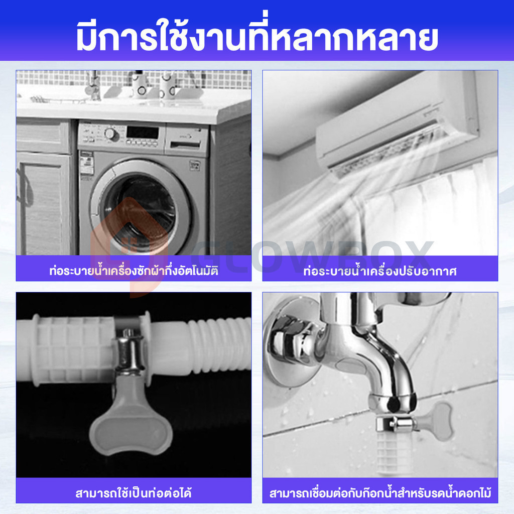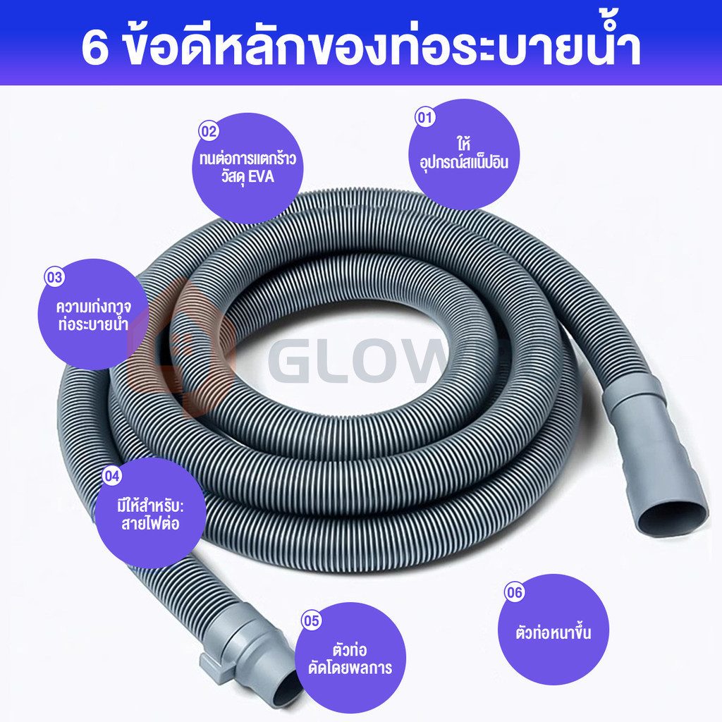 1. สายน้ำทิ้งสำหรับต่อเข้ากับเครื่องซักผ้า เกลียวต่อมีขนาด 25 mm ต่อเข้ากับเครื่องซักผ้า ได้ทุกรุ่น ทุกยี่ห้อ ทั้งฝาบน ฝาหน้า