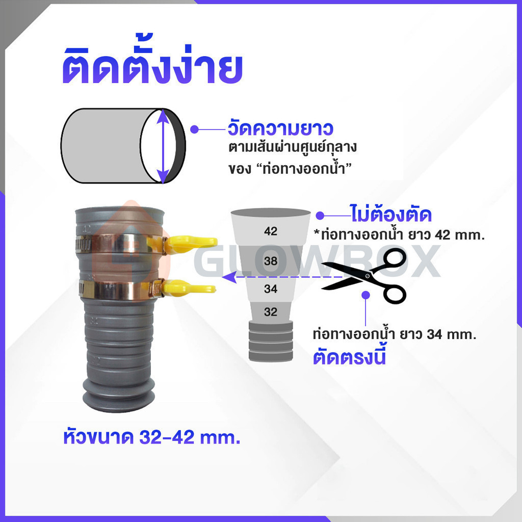 2. สามารถต่อเข้ากับหัวก๊อกได้หลากหลาย เช่น ก๊อกสนาม ก๊อกซิงค์ ก๊อกผนัง ก๊อกบอล ท่อน้ำทิ้งอ่างล้างหน้า ฯลฯ