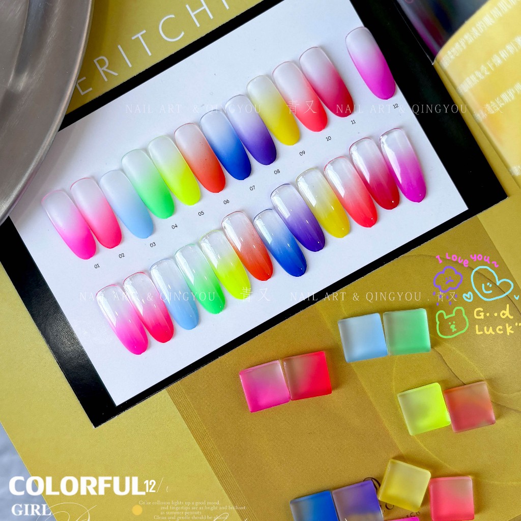 QINGYOU เล็บเจล 1 ชิ้น สีไล่เฉด ใหม่Solid Pat Gel 12-square series ยาทาเล็บ, กาวทาสี, ยาทาเล็บสีทึบ