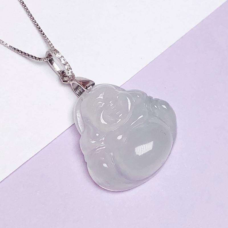 จี้คู่พระพุทธรูปและเจ้าแม่กวนอิม ฝังเมล็ดแตงโอมิก्रอน และคริสตัลหยก พร้อมสร้อยคอเงิน
