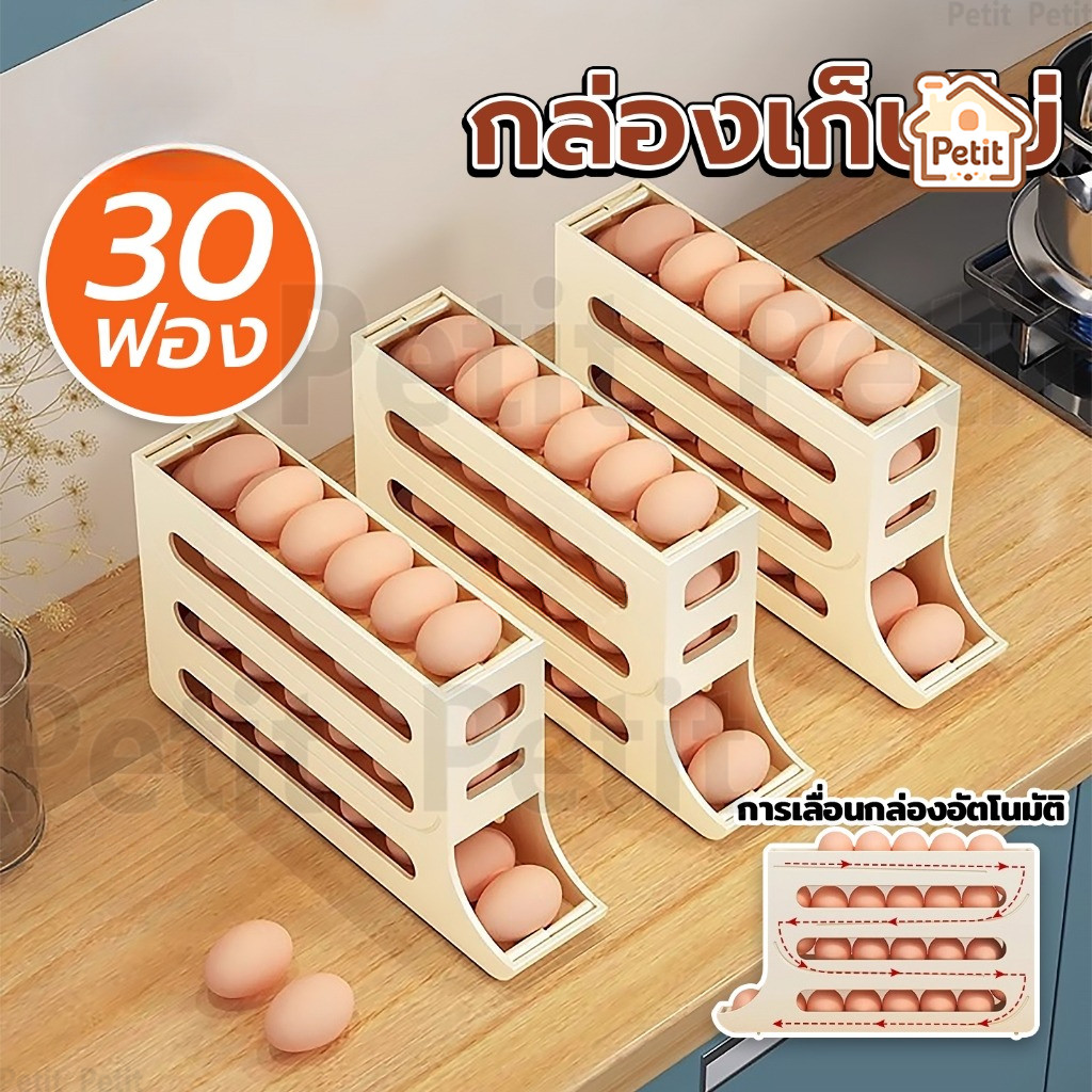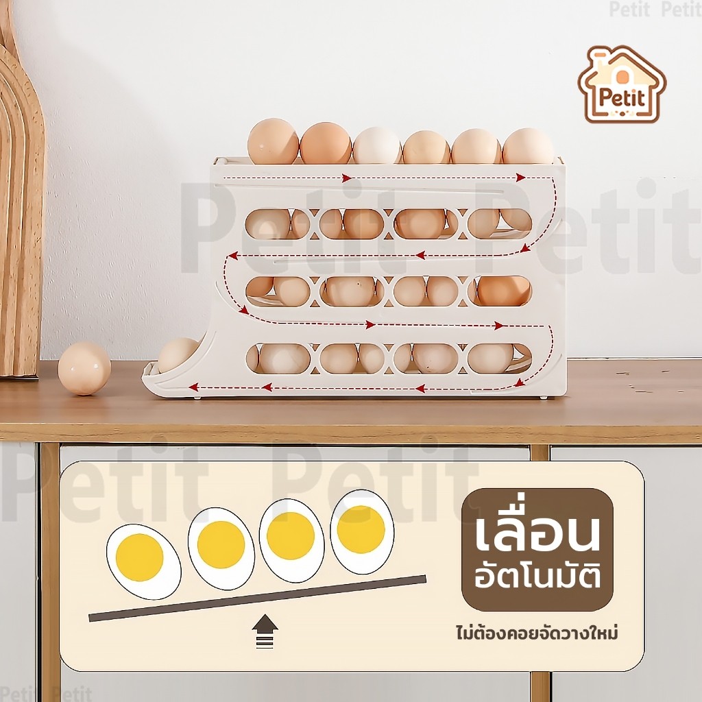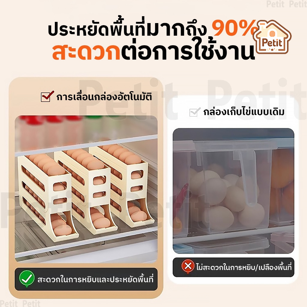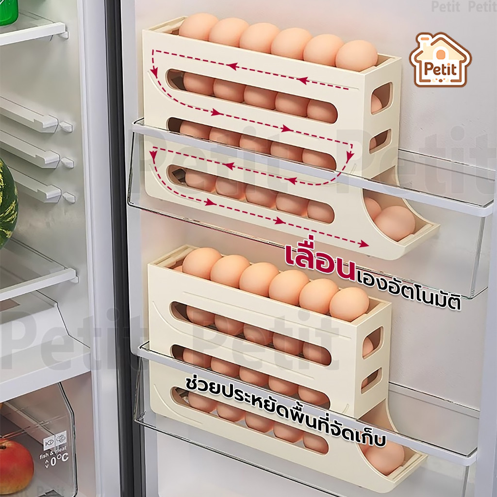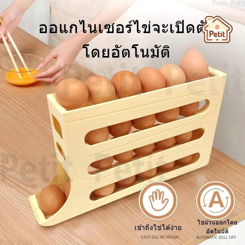 ที่เก็บไข่ในตู้เย็น แบบลูกกลิ้งอัตโนมัติ กล่องเก็บไข่ ความจุใหญ่ ประหยัดพื้นที่