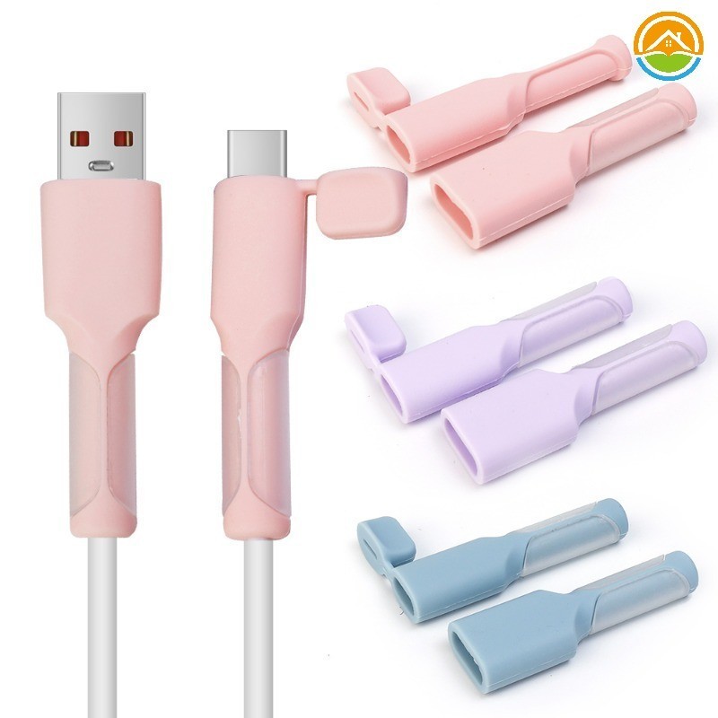 2 ชิ้น/เซ็ต Universal USB Type-C Interface Data Cable Protective Sleeve – สายชาร์จโทรศัพท์แบบพกพา Anti-break Silicone Cover